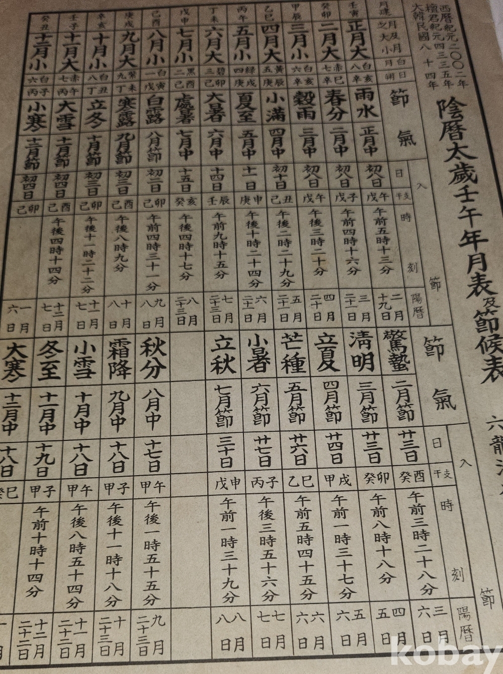 대한민력이라는 민간용 달력책으로 단순한 날자 정보뿐 아니라
