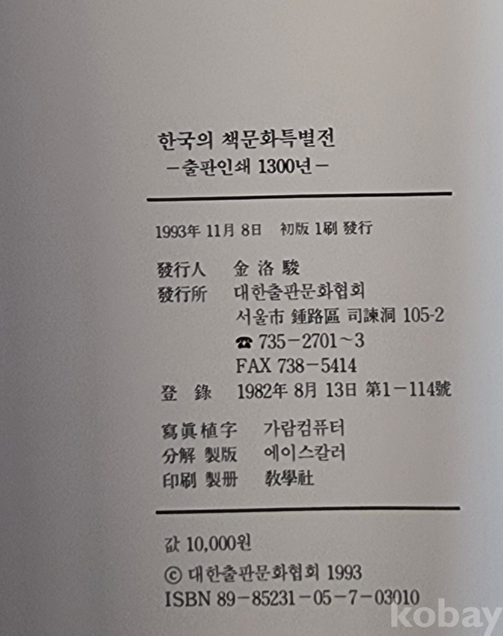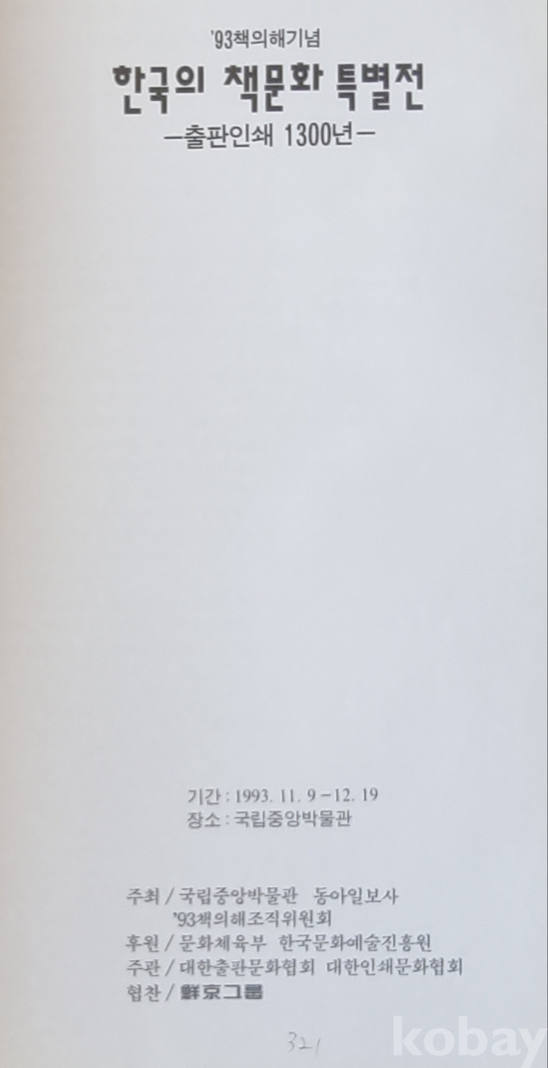 [11] <<한국의 책문화 특별전-출판인쇄 1300년->> / 대한출판문화협회 편, 1993년 11월 8일 발행 초판