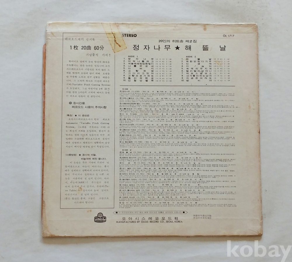 EX : 약간의 마모, 모서리 찢김 존재 음반상태