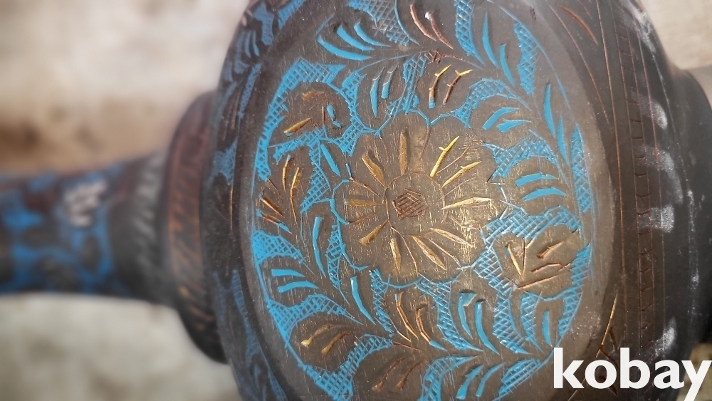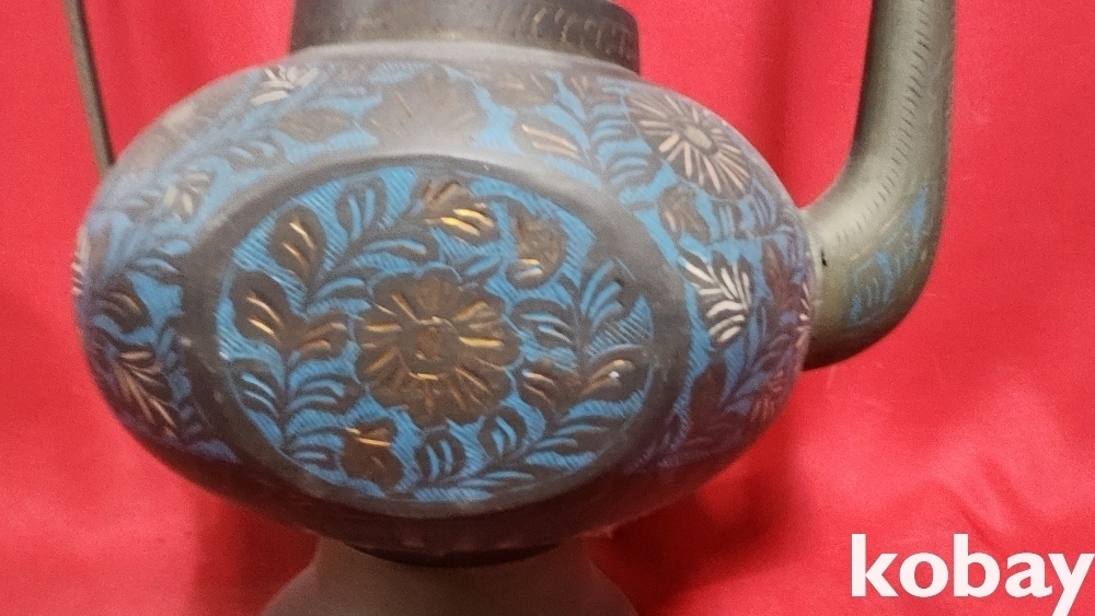 인도산 청동 꽃문양 대형급 주전자입니다,