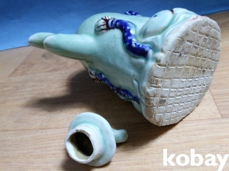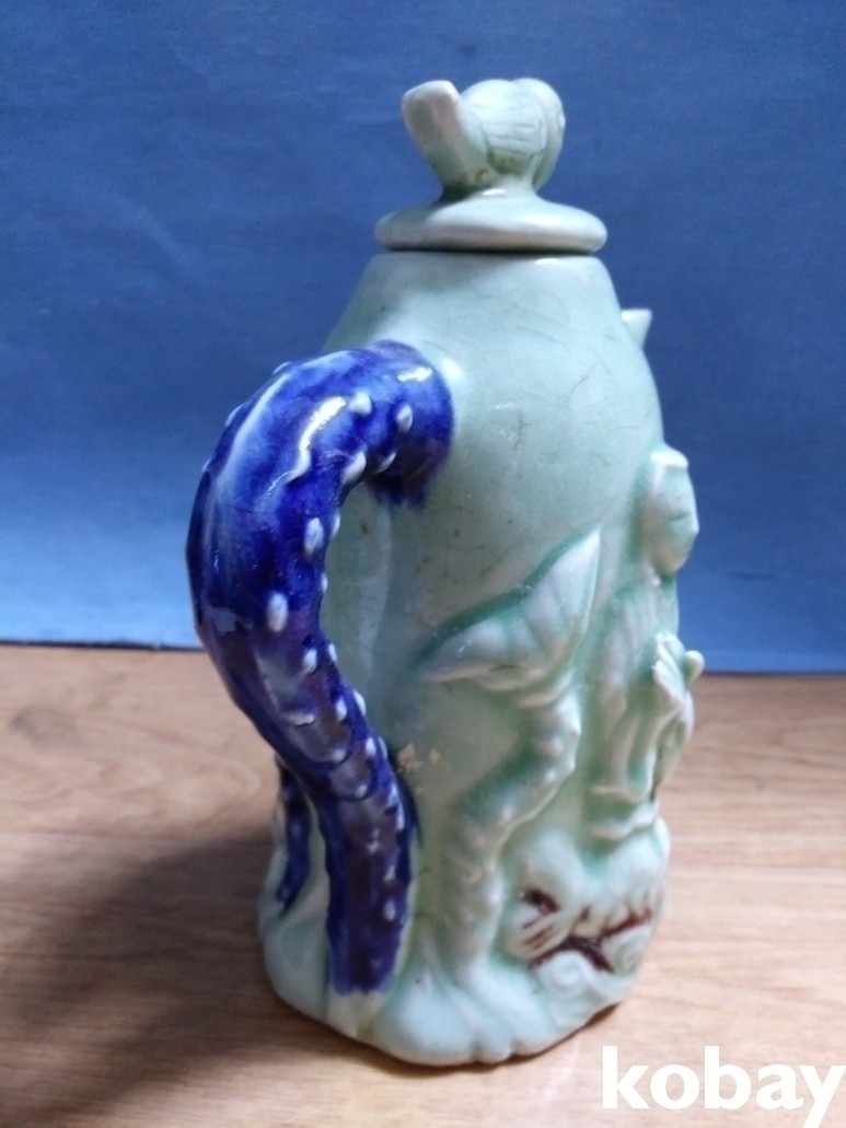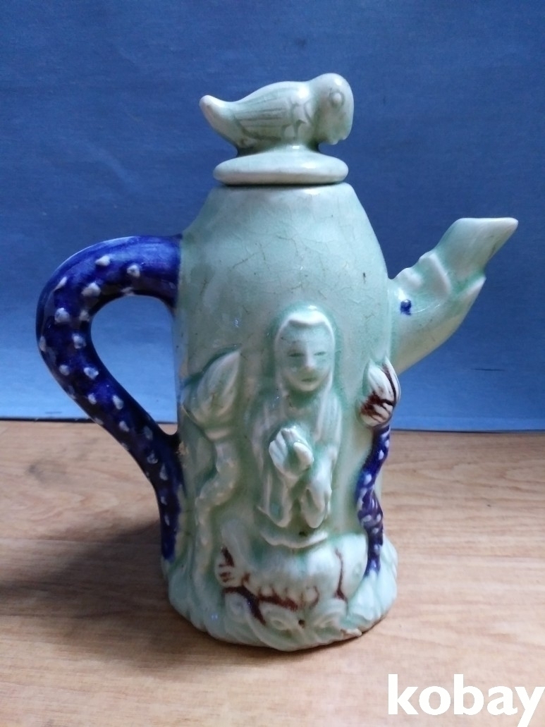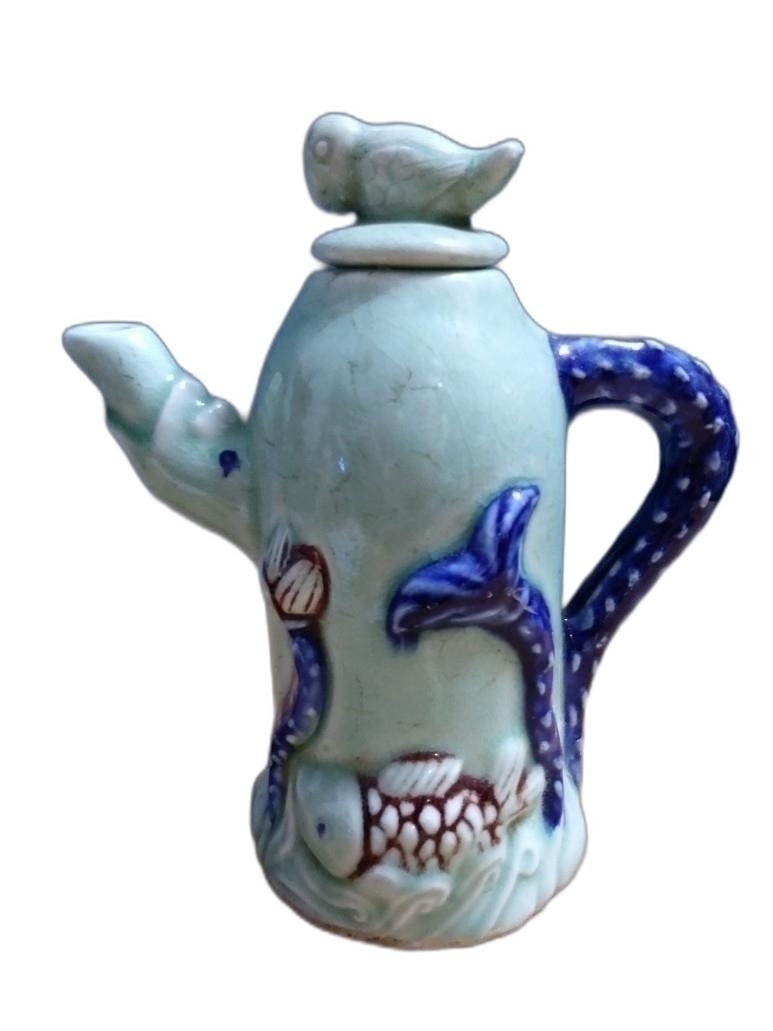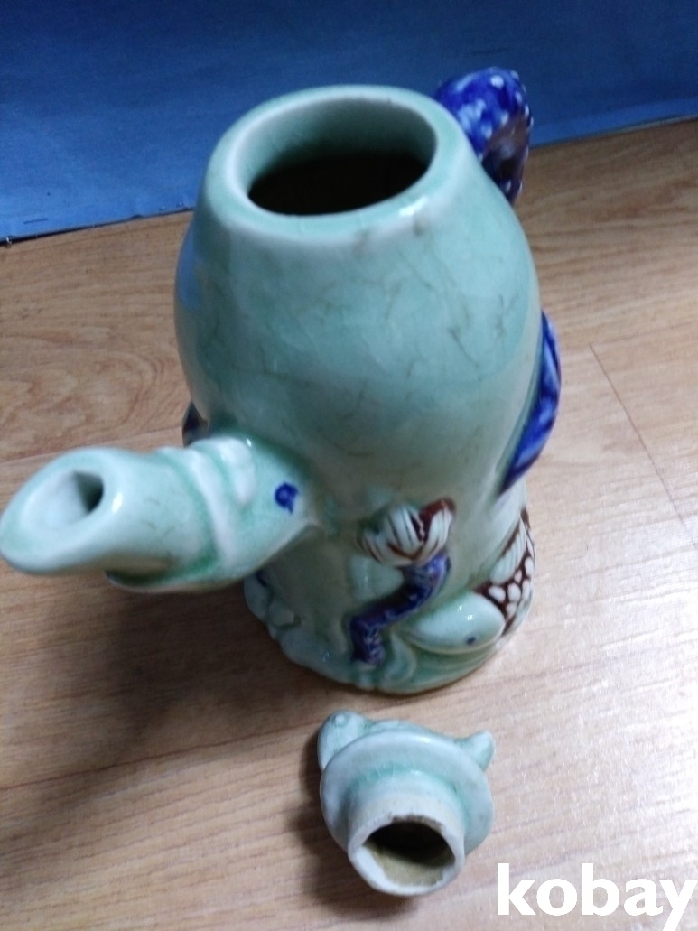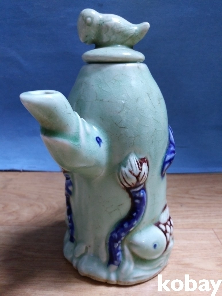 인물과 연꽃, 물고기가 돌출로 있는 도자기 입니다.