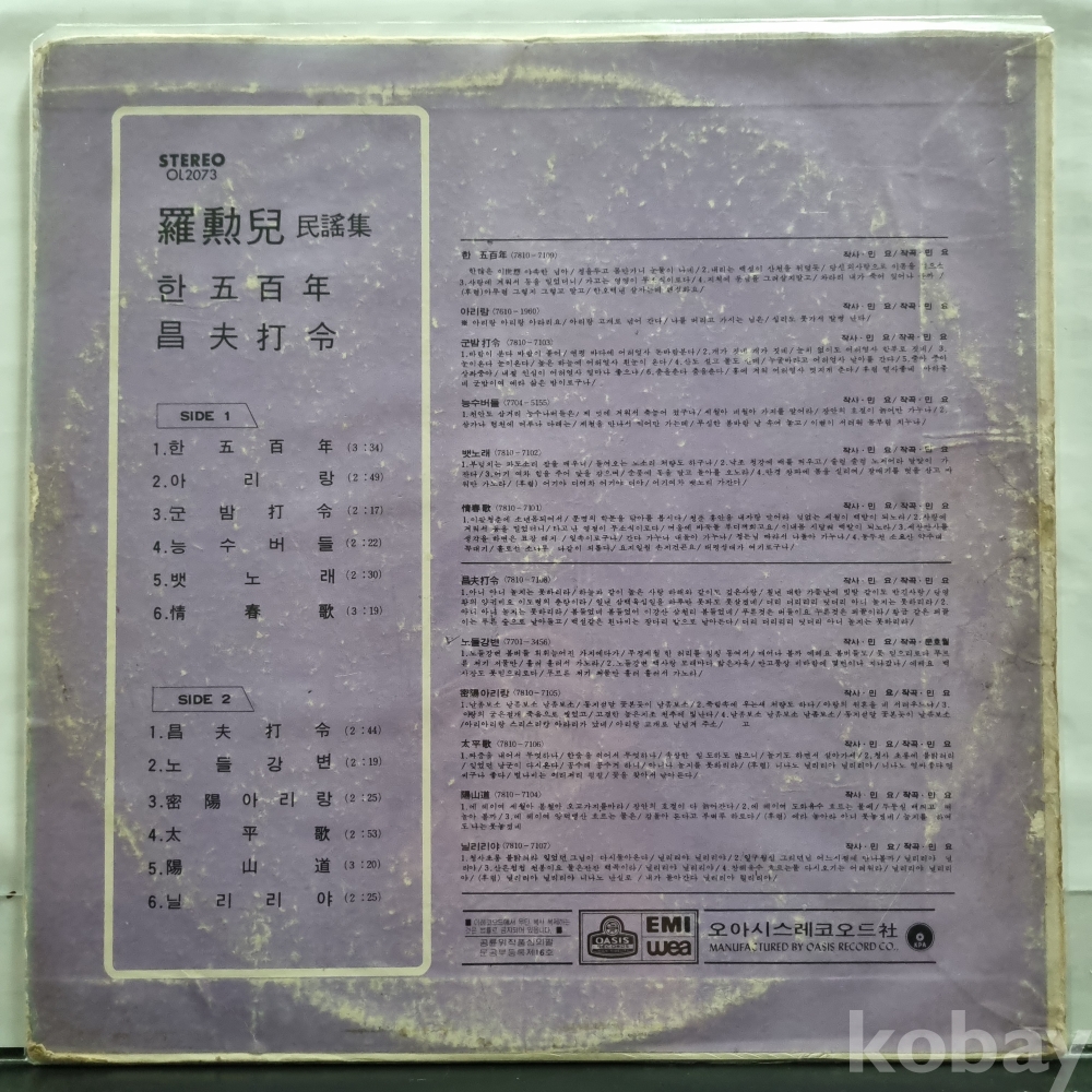 자켓, 음반 상태 표기는 판매자의 주관적이니 개인 차가 있을 수 있습니다.