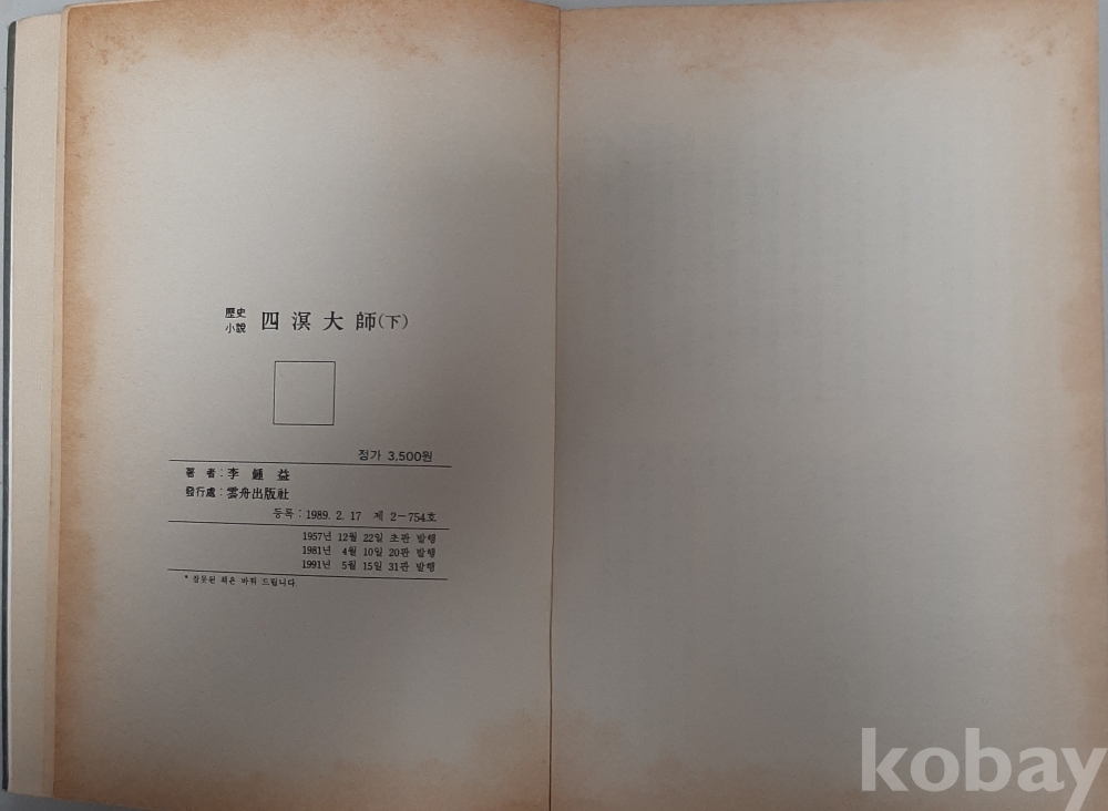 낙장 낙서 없음, 표지 책등 완전, 반품불가, 반품시 반품비용 구매자부담조건 판매, 크기는 정확하지 않음