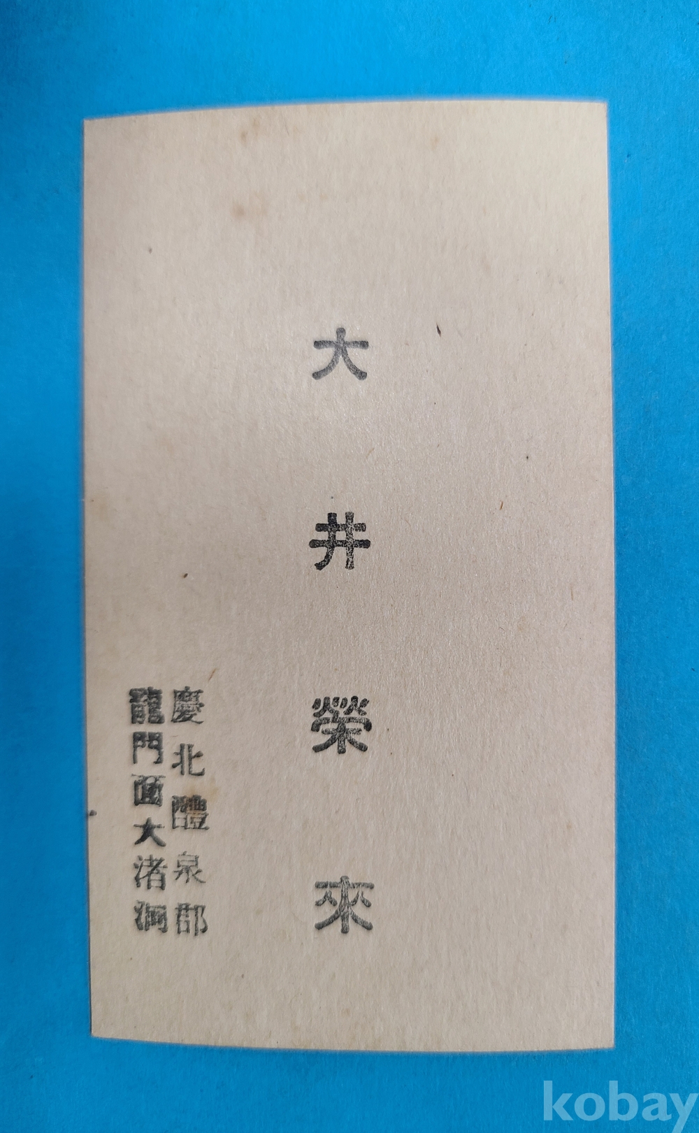 일제강점기 慶北 醴泉郡 龍門面 大渚洞 ‘大井榮來’ 명함 (명함보관통 포함) 창씨개명한 이름 이다