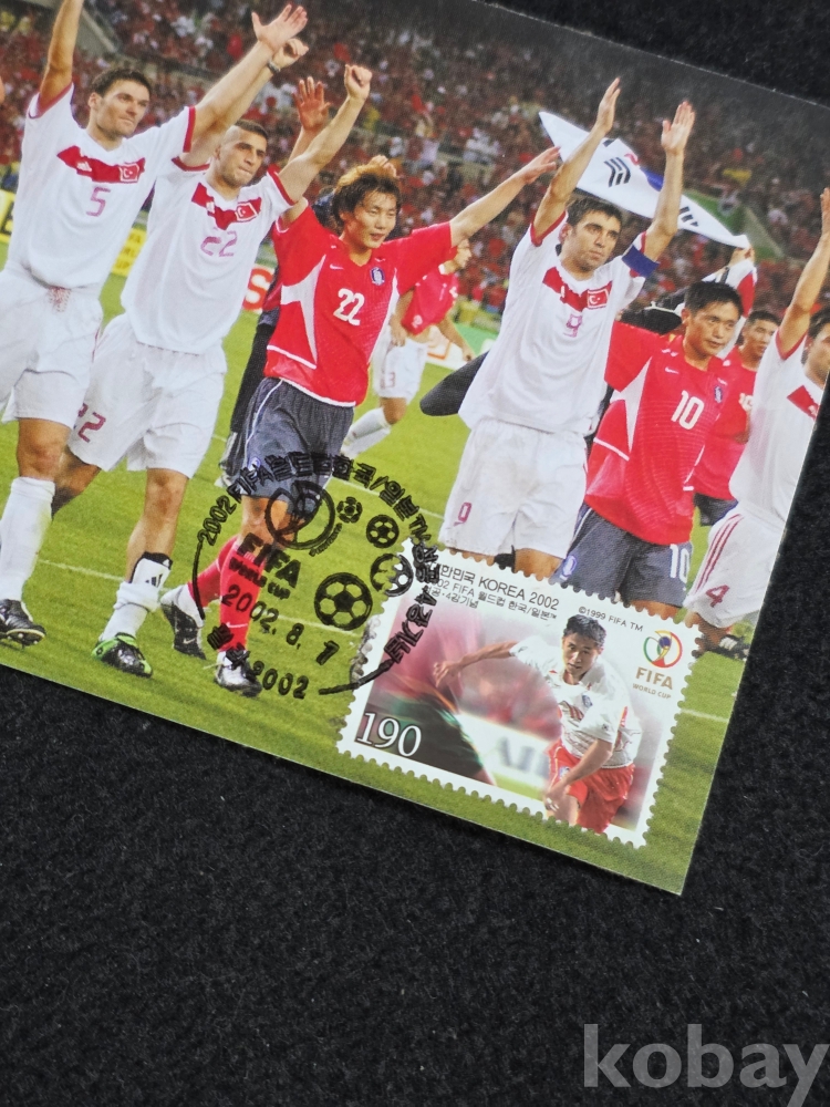 (((우편엽서/사진엽서/월드컵자료))) 2002 FIFA 월드컵 우표부착 월드컵전사 칼라사진 엽서 (기념인소인)