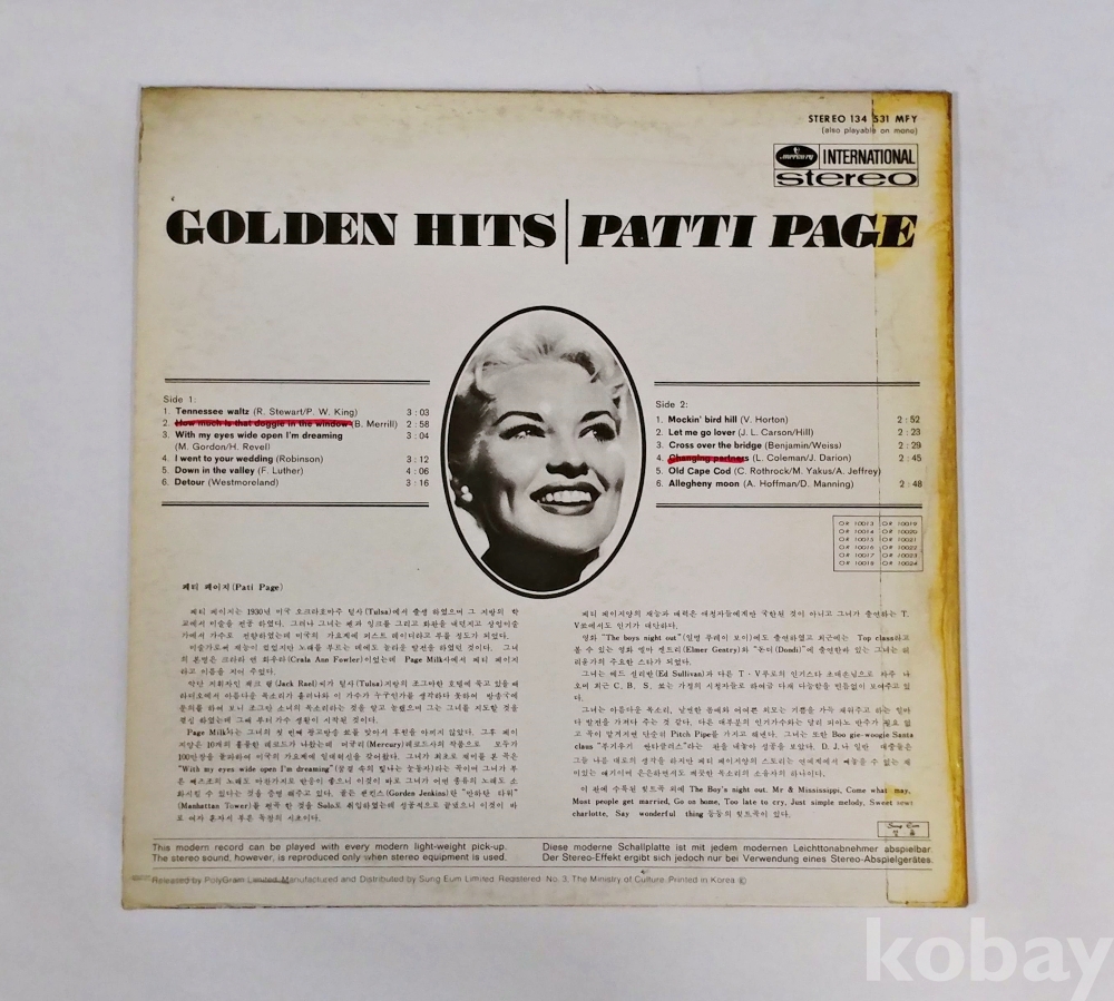 | 자켓상태 | EX : 약간의 마모, 모서리 찢김 존재 | 음반상태 | EX : 재생에 영향 없는 가벼운 기스 존재 | 발매정보 | 알수없음 | 가사지여부 | 무 |