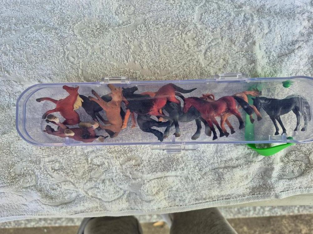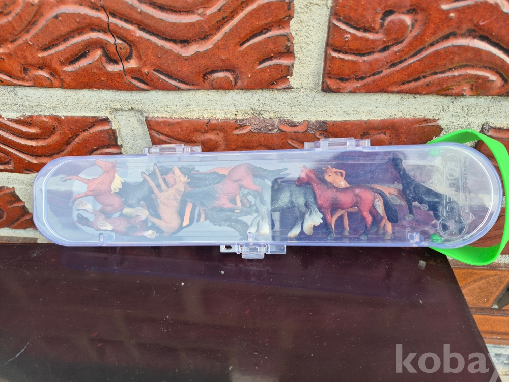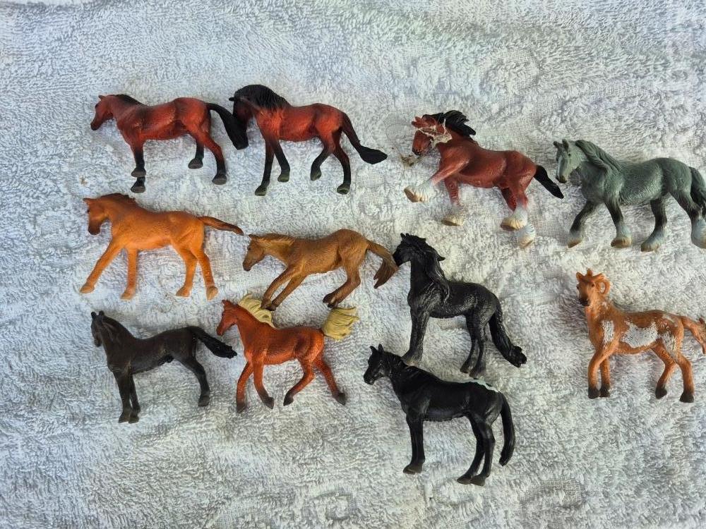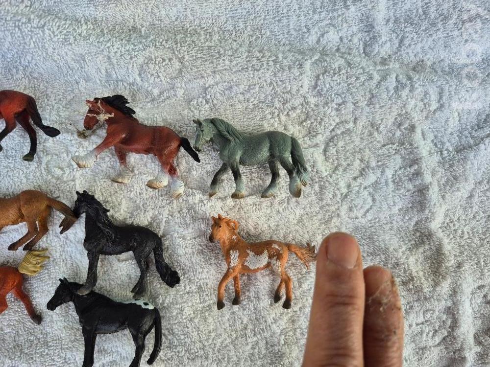 보존 상태 좋습니다. 한마리가 약5cm로 11마리입니다. 서양의 말들을 종류대로 분류한것. 플라스틱 재질입니다.