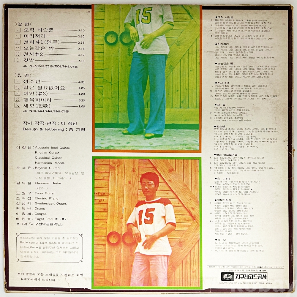 상품 설명 | Side A 1. 오직 사랑뿐 2. 이리저리 3. 천사 #1 (연주) 4. 오늘같은 밤 5. 천사 #2 6. 깃발 Side B 1. 성소년 2. 말은 필요없어요 3. 여인 (#3) 4. 행복하여라 5. 세모 (연가) | ||