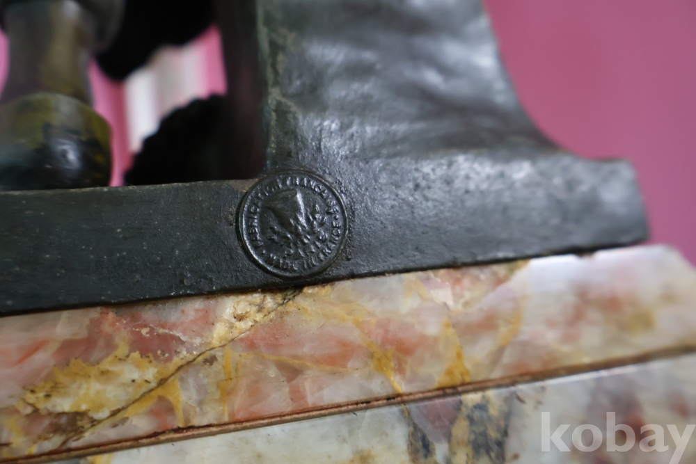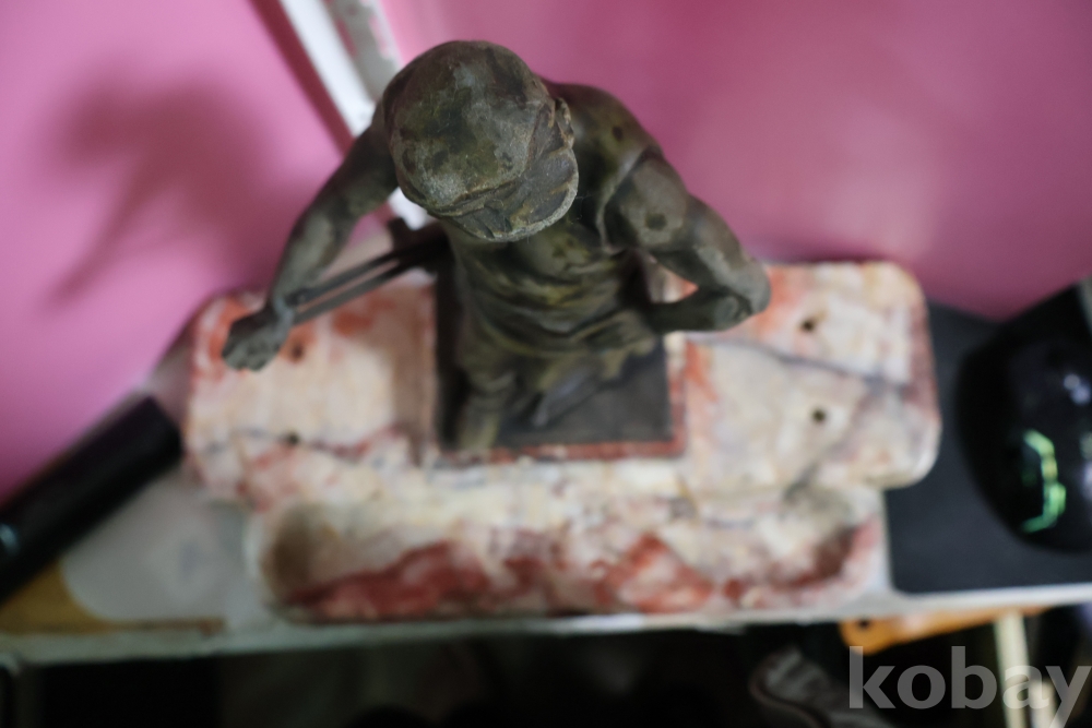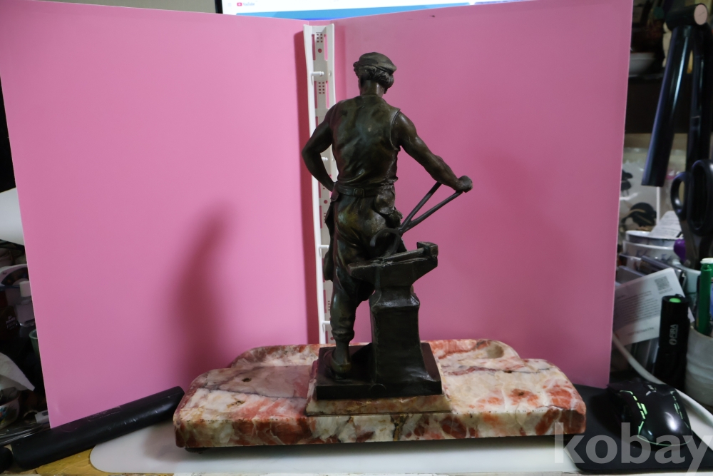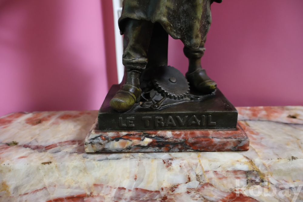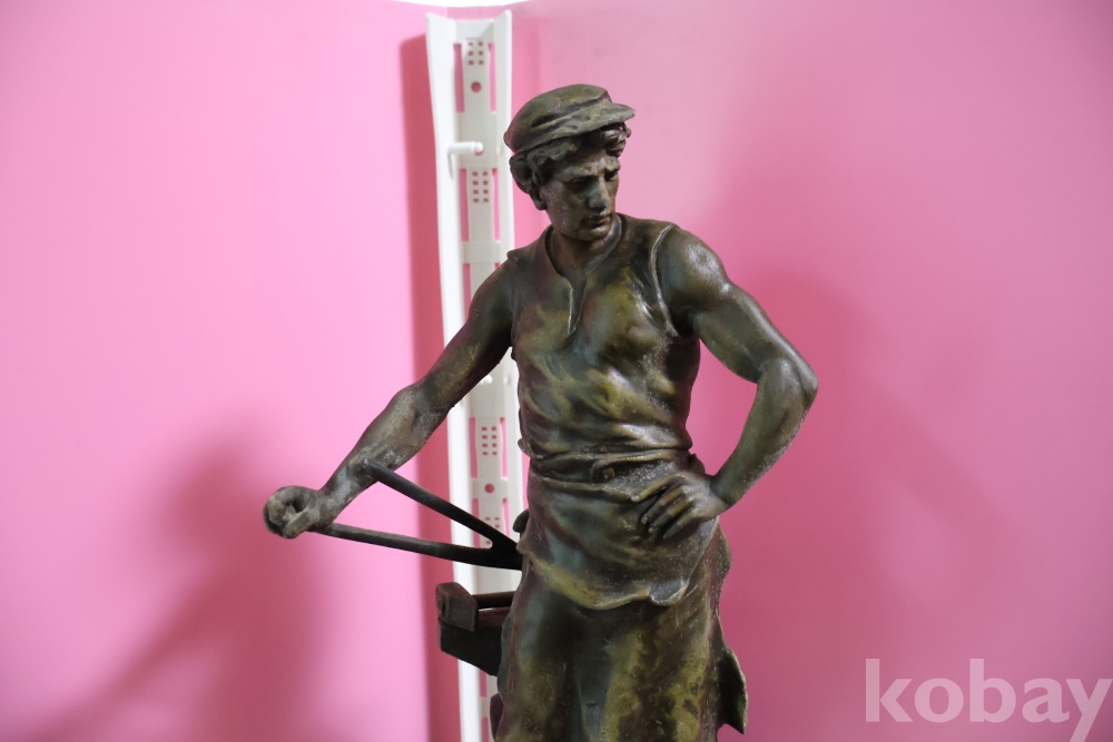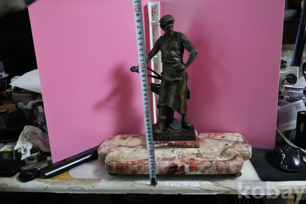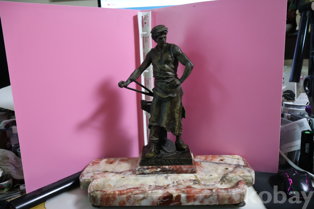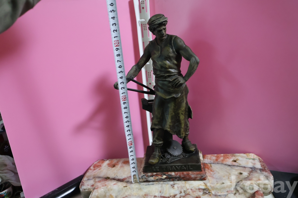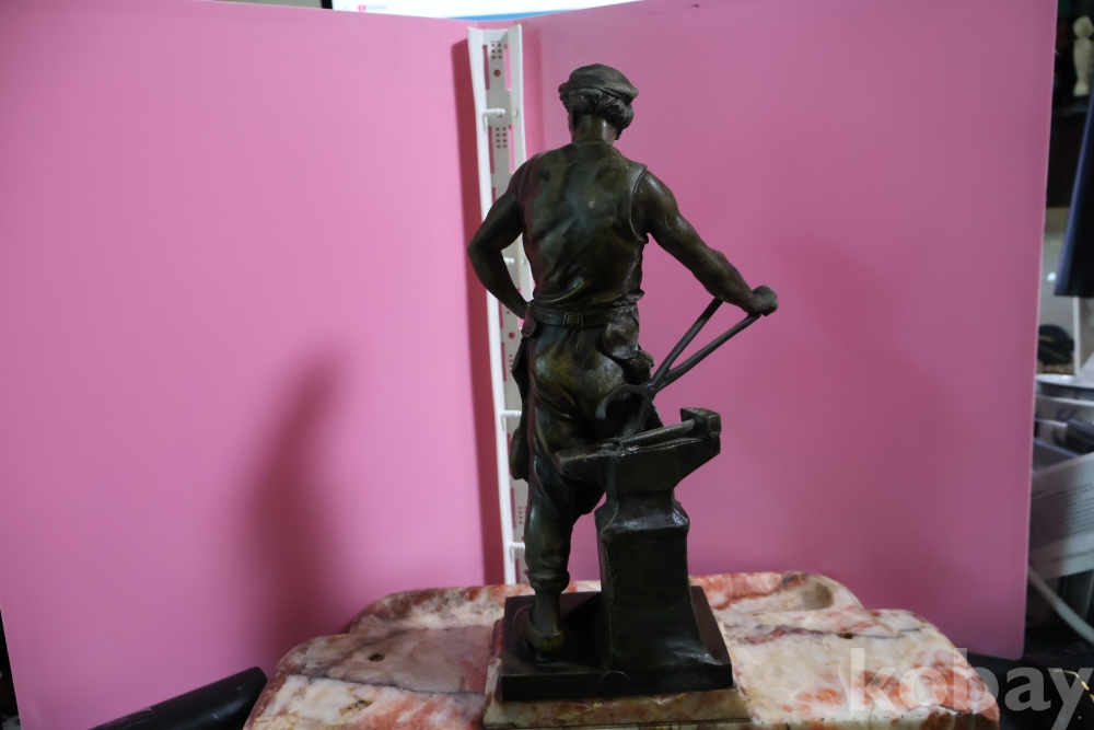 EMILE LOUIS PICAULT (FRENCH, 1833-1915) "LE TRAVAIL" BLACKSMITH STATUE, 당대의 명품 대장장이 임니다 대리석 받침대를 가진 멋진 상이며 서울 지역만 판매 직배 함니다 사진 참조 하세요 대리석 에는 왼쪽 오른쪽에 구멍?이 보임니다 무게감이 대단함니다