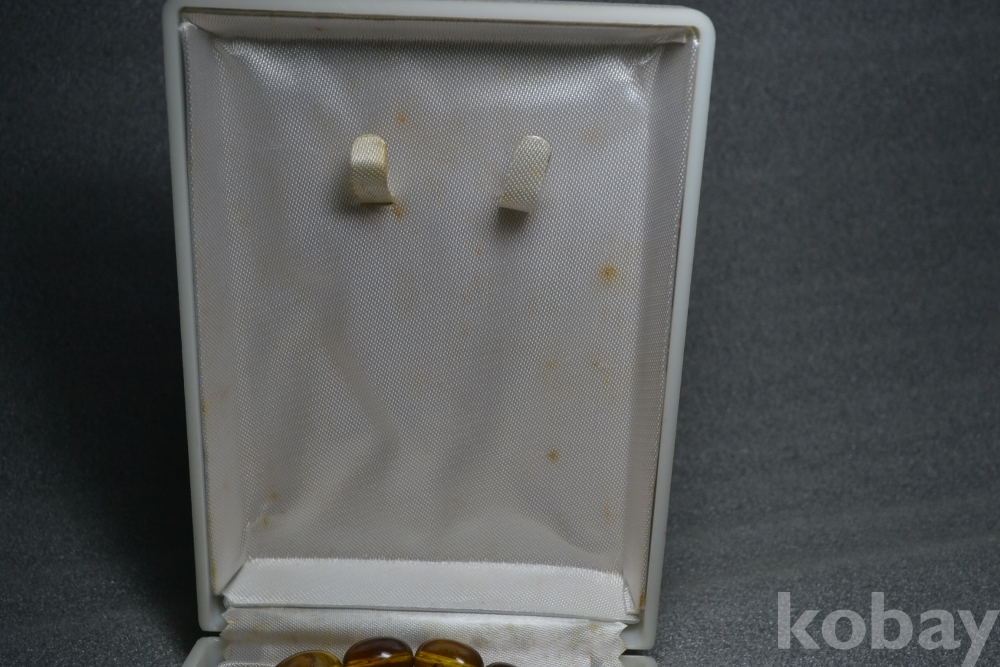 제짝 케이스는는 안쪽면을 보시면 얼룩점등 세월의 때묻음이 많이 보이지만, 대모풍 목걸이 작품은 몇번 사용안된듯 다마알 표면광택도 아주 뛰어나며, 미사용품처럼 깨끗하게 잘 보존되어진 작품 입니다. (사진참조)