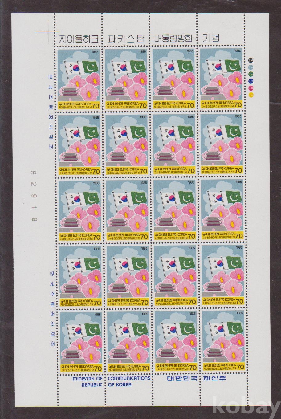 (한국전지) 1985.5.6 자울하크 파키스탄대통령 방한 sheet of 20 MNH