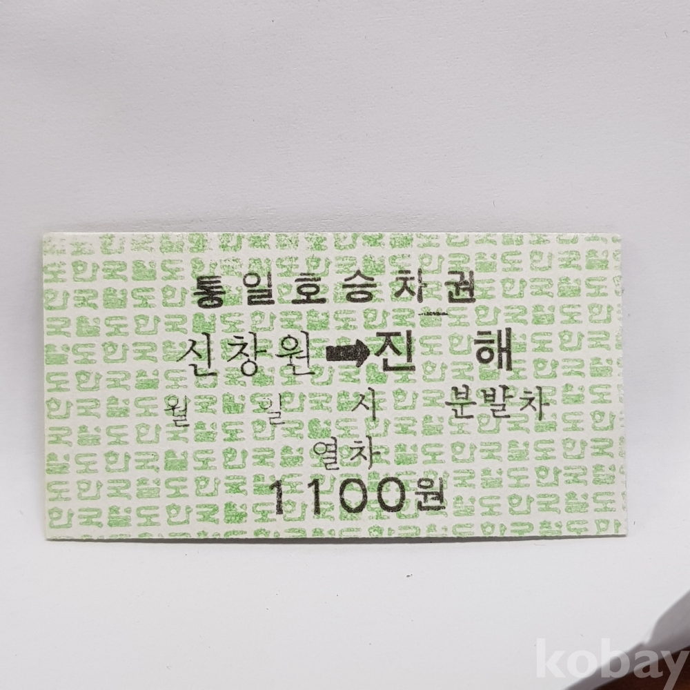 " 신창원 ▶ 진해 " 미사용 통일호 승차권 1100원