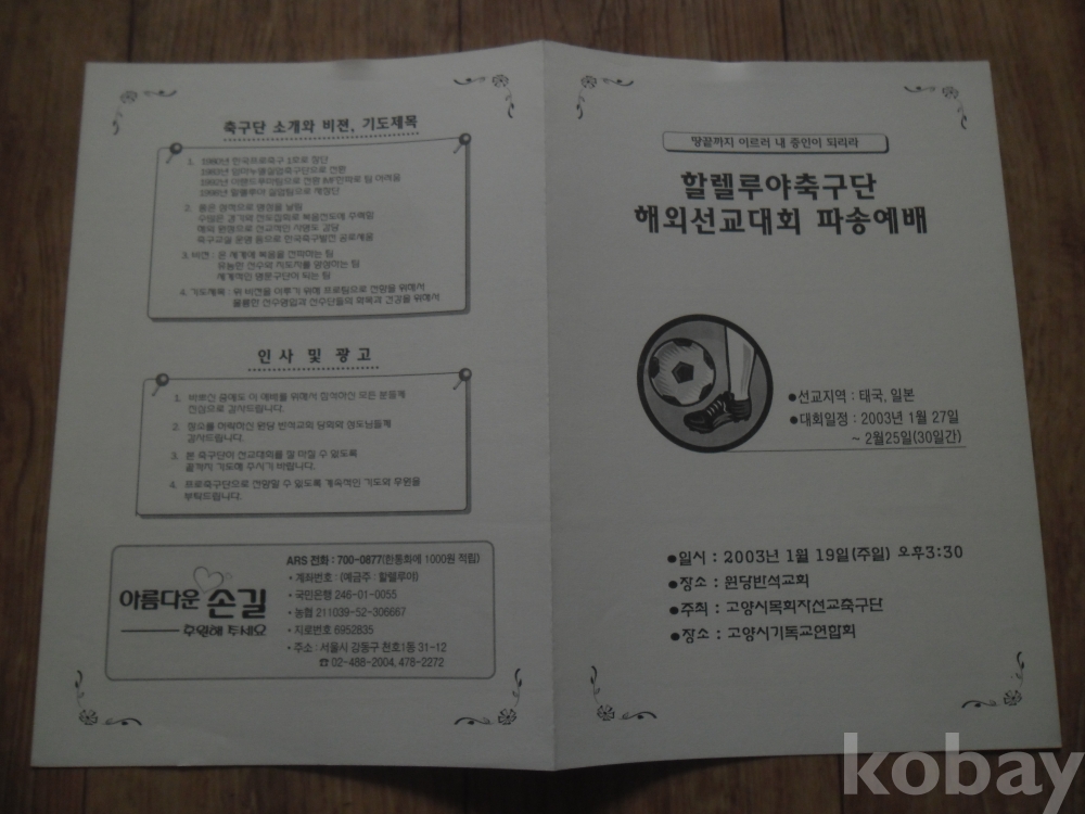 2003년 할렐루야축구단 해외선교대회 파송예배