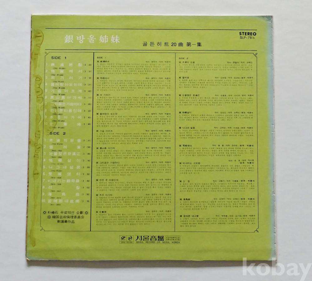 | 자켓상태 | EX : 약간의 마모, 모서리 찢김 존재 | 음반상태 | VG : 생활 기스 다수, 가벼운 노이즈 존재 | 발매정보 | 알수없음 | 가사지여부 | 무 |