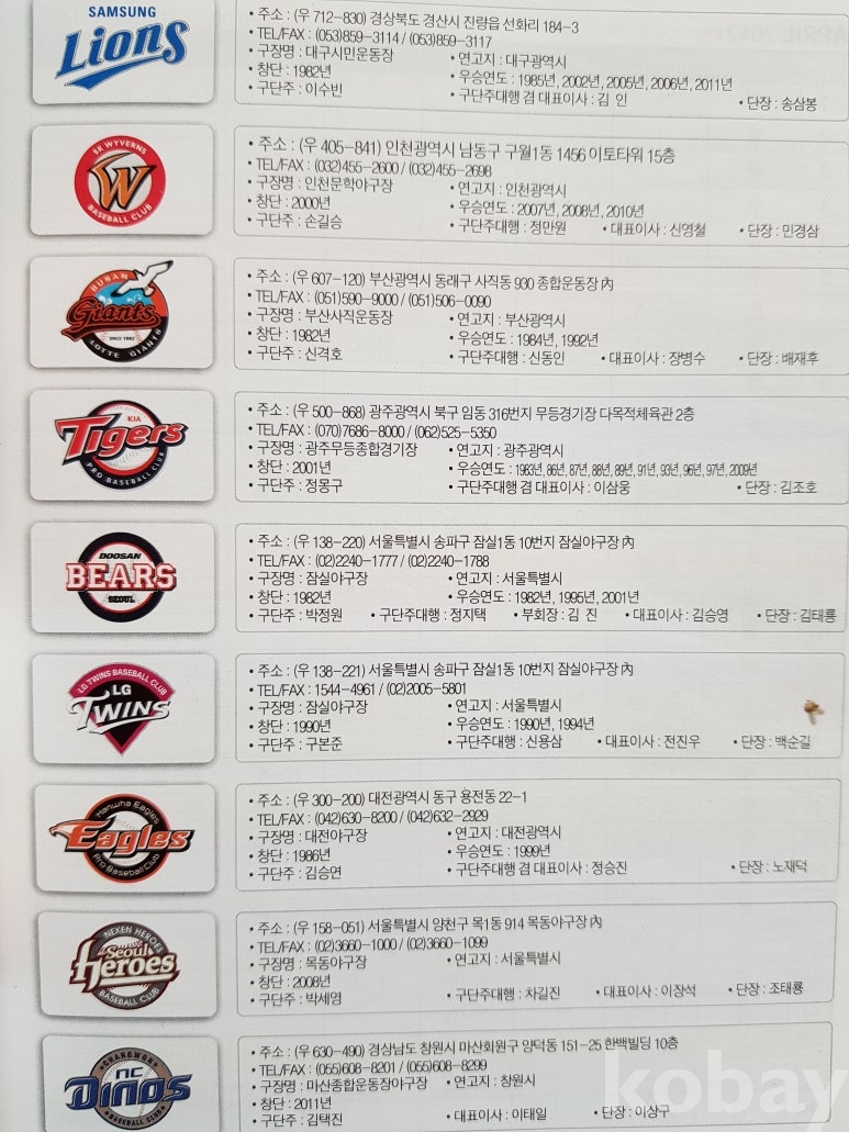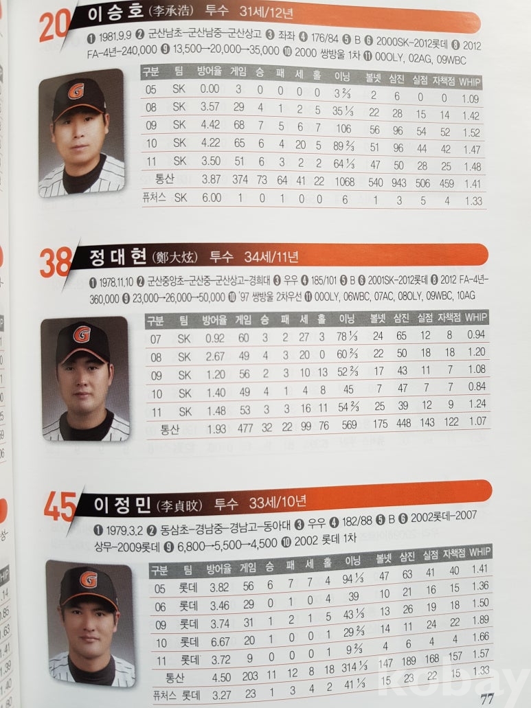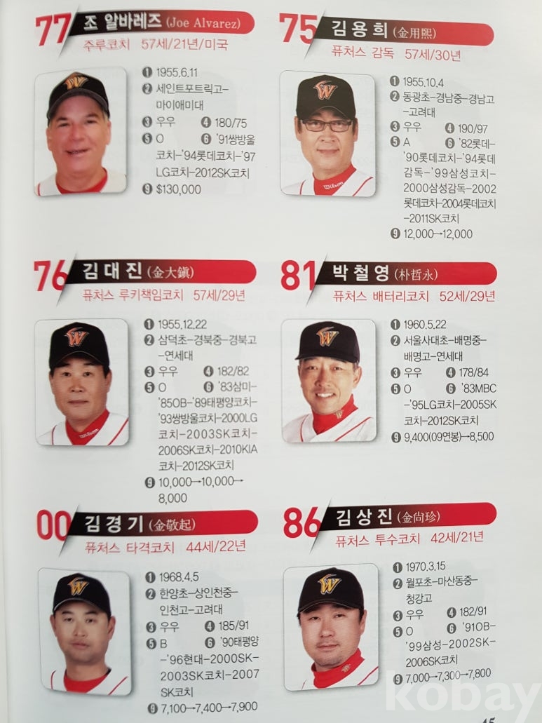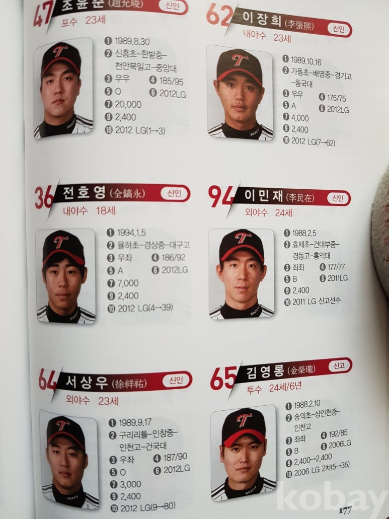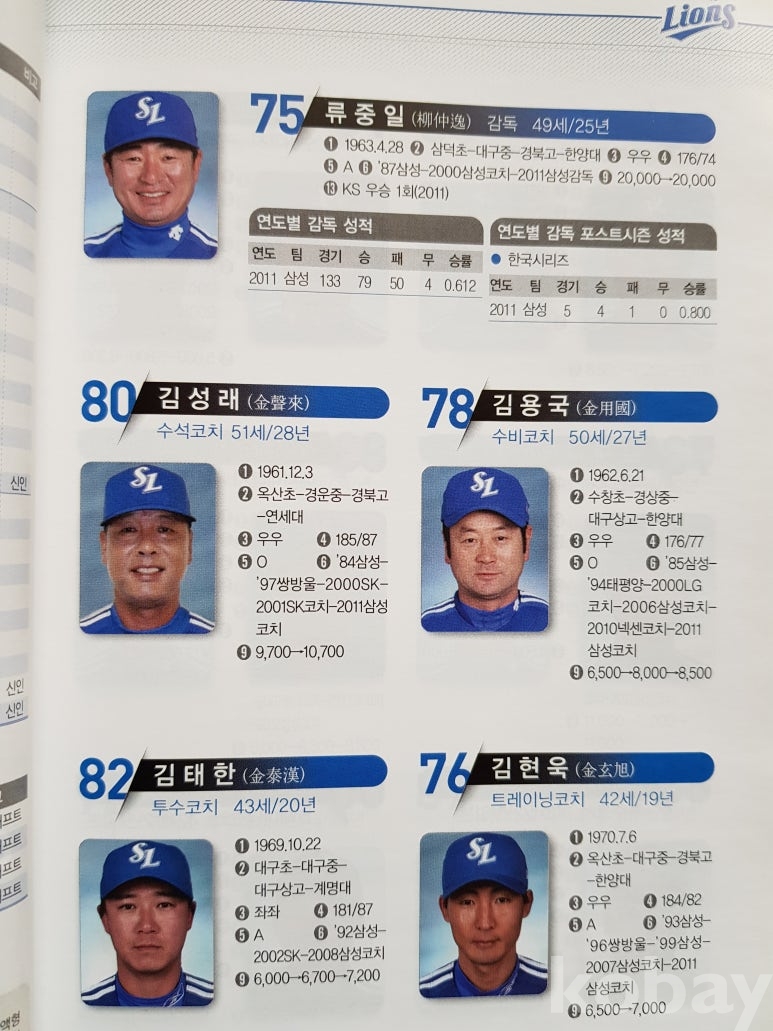 설명: 이 책의 오피셜 가이드북으로 속 내용에는 전 구단 선수 성명. 생년원일. 국적. 배번. 위치. 출신교. 투타. 신장/체중. 혈액형. 입단년도. 계약금. 년봉 등 등 기록 제공된 책입니다.