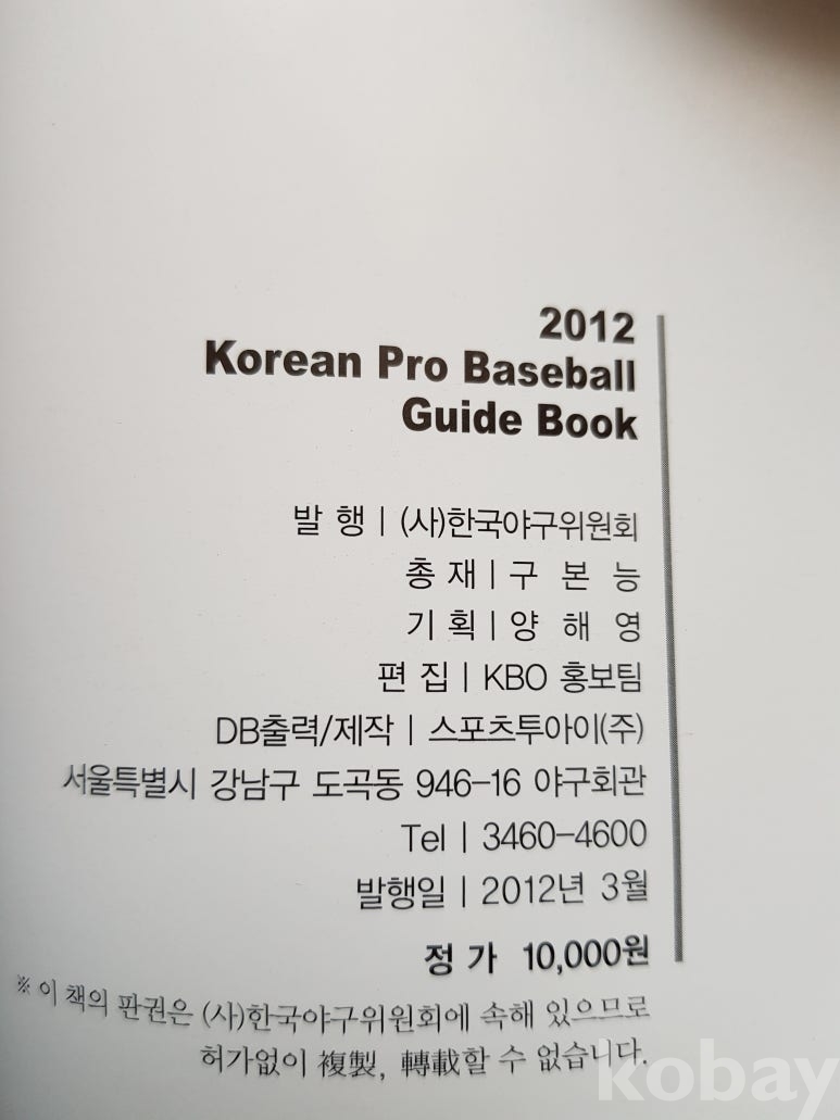 제목: 2012년 KBO OFFICIAL GUIDE BOOK 판매