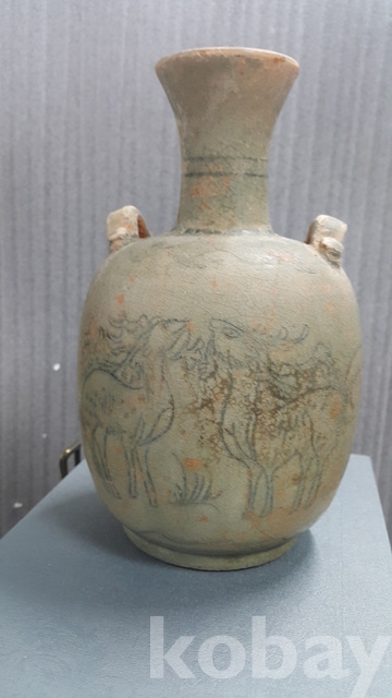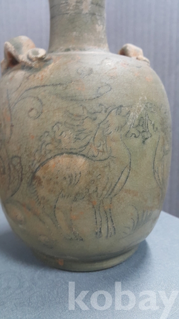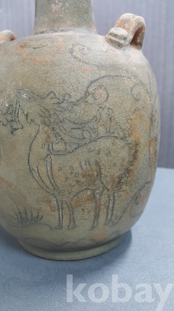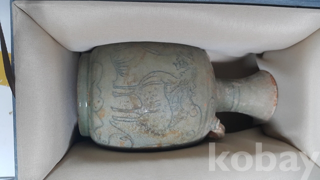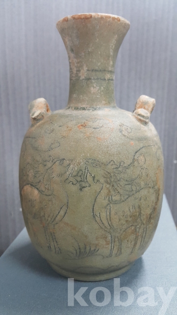 j-57.고급상자에담긴 오래된송 청자사슴문항아리