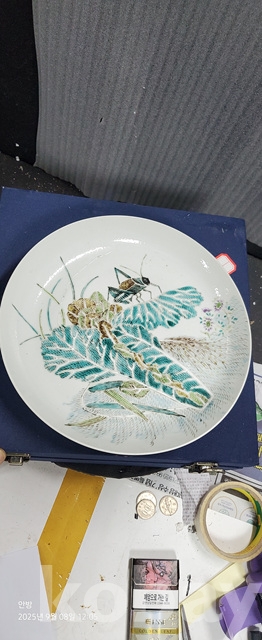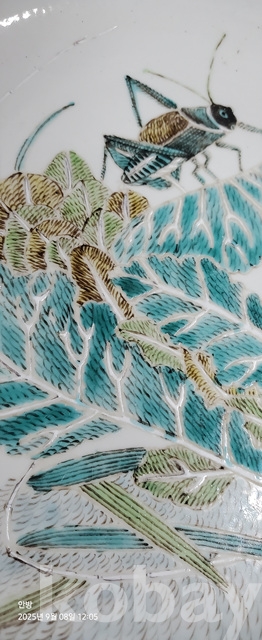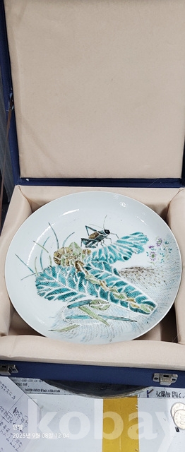 b-144.고급상자에에담긴 수작업으로만든오래된초충도 오채큰접시