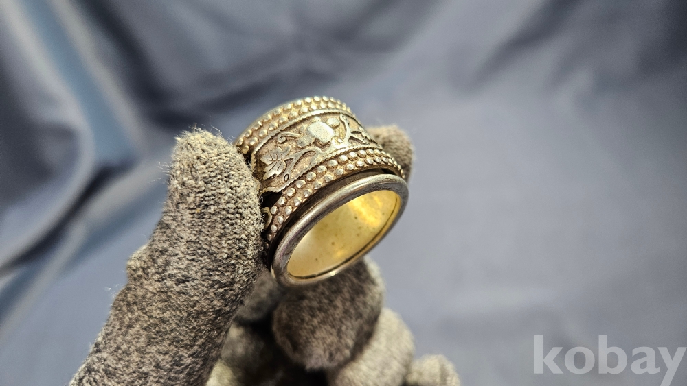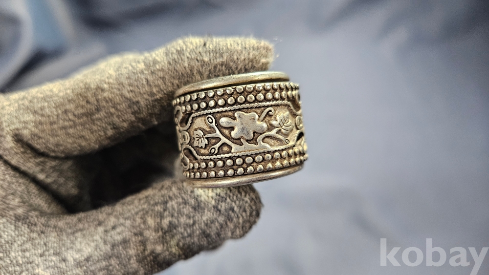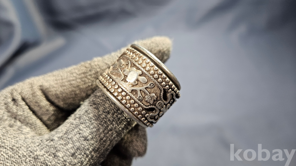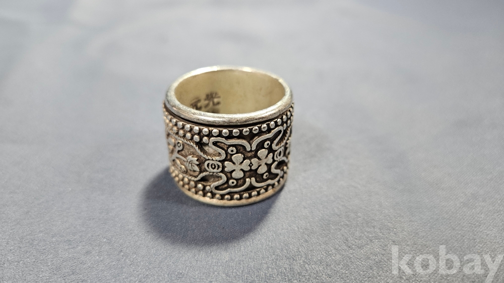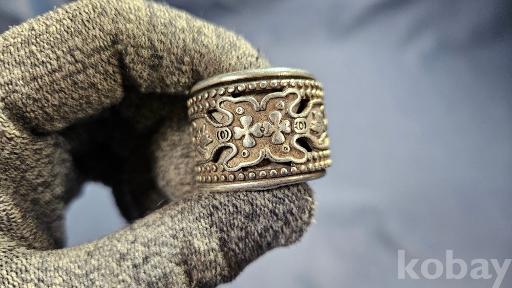 고풍스러운 문양이 투각으로 들어있는 큼직한 반지형태 입니다.
