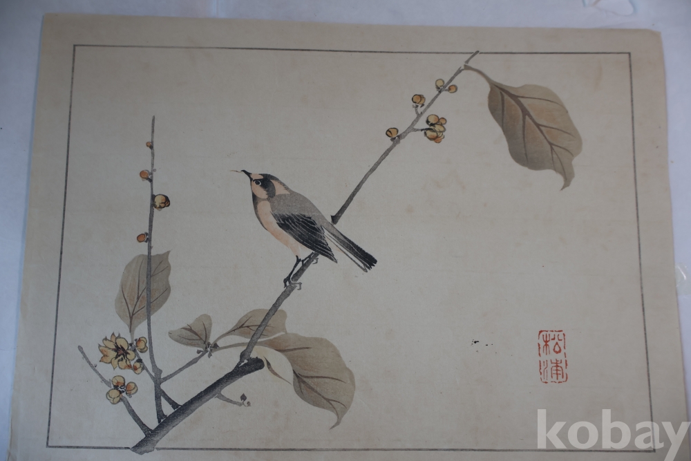 1930 대 목판화 새 임니다 아름다운 디자인 구도 섬세 함을 가진 명화 임니다 화가의 낙관이 보임니다