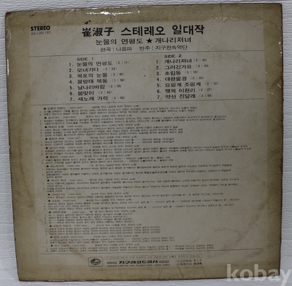 | 자켓상태 | G : 눈에 띄는 손상, 테이프, 필기 존재 | 음반상태 | G : 눈에 띄는 스크래치, 튐 또는 노이즈 발생 | 발매정보 | 초반 | 가사지여부 | 유 |