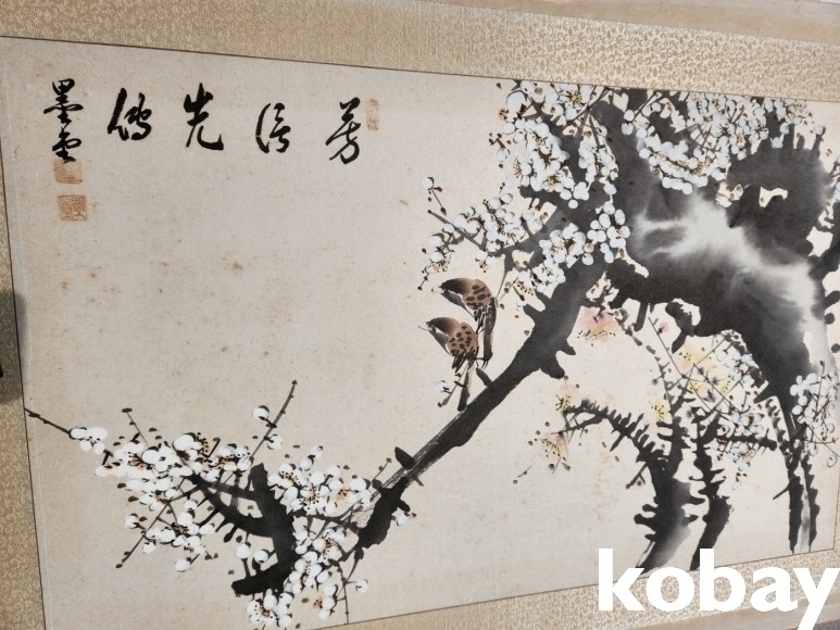 매화꽃과 새 그림 입니다.