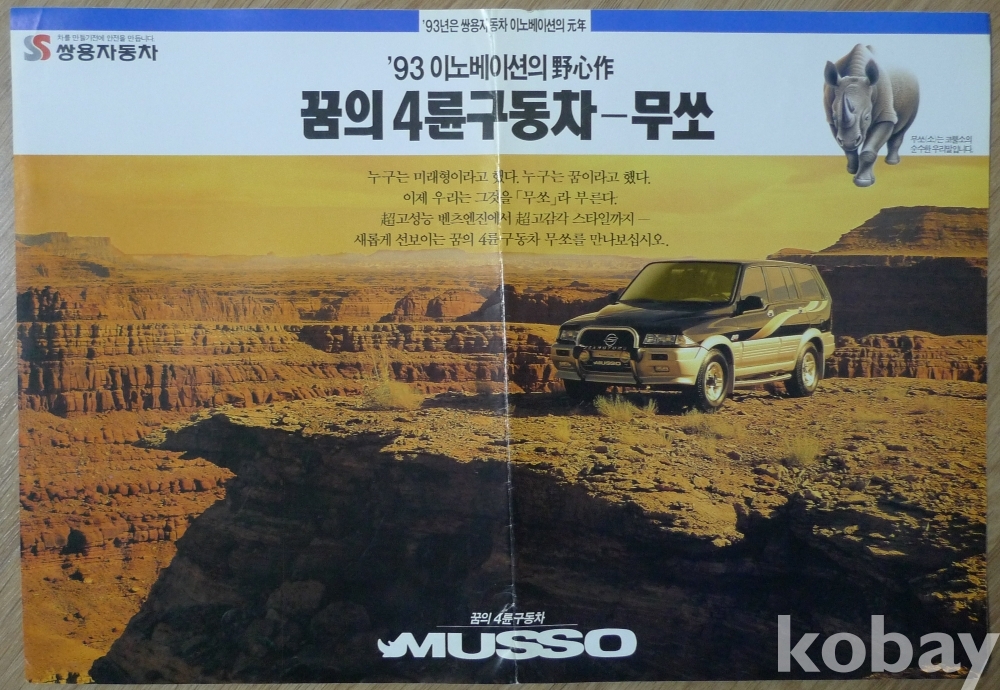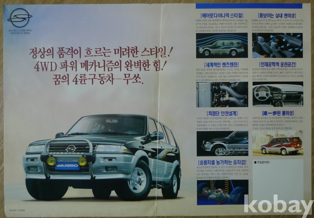 1993년 꿈의 4륜 구동차 쌍용자동차 무쏘 광고 전단지