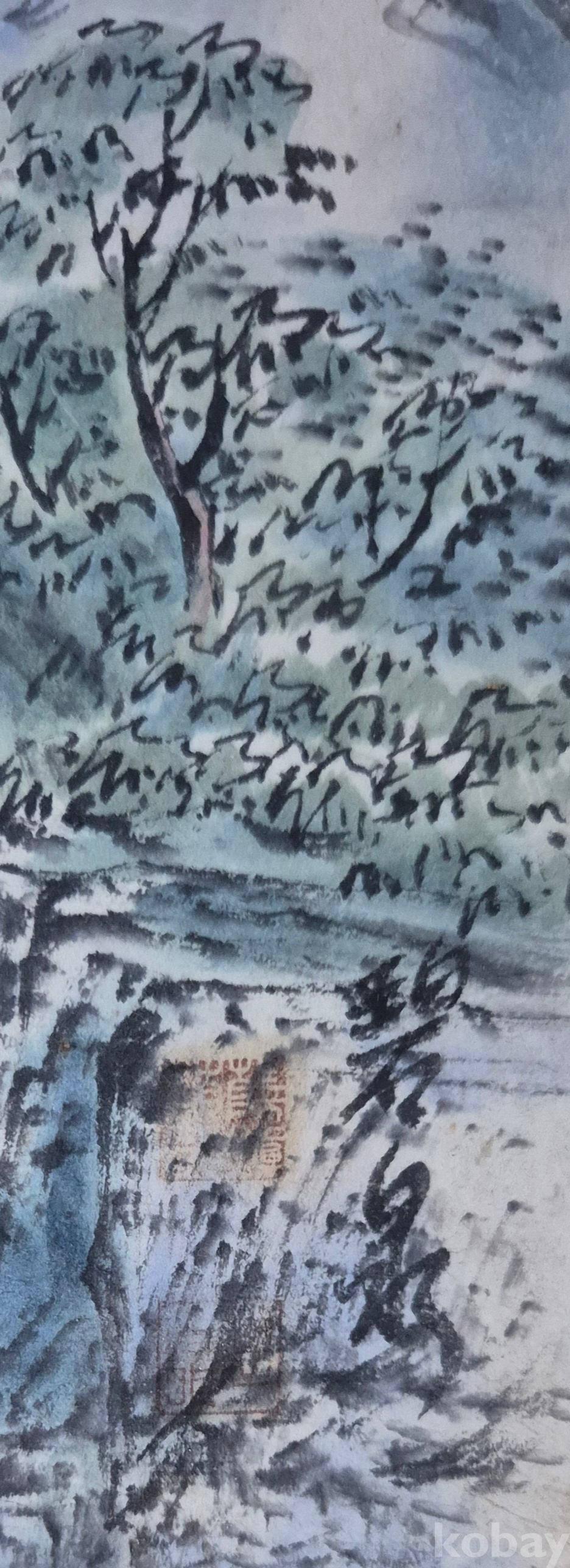 시원스럽게 잘 그려진 작품성 좋은 멋진 산수화로 상당한 수준의 화가분 작품 추정되오니
