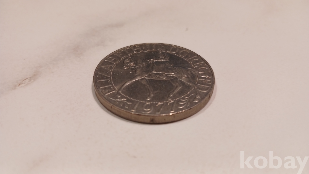 * 앞에는 여왕이 말타고 있는 모습이, 뒤는 왕관과 영국휘장이 새겨져 있습니다.