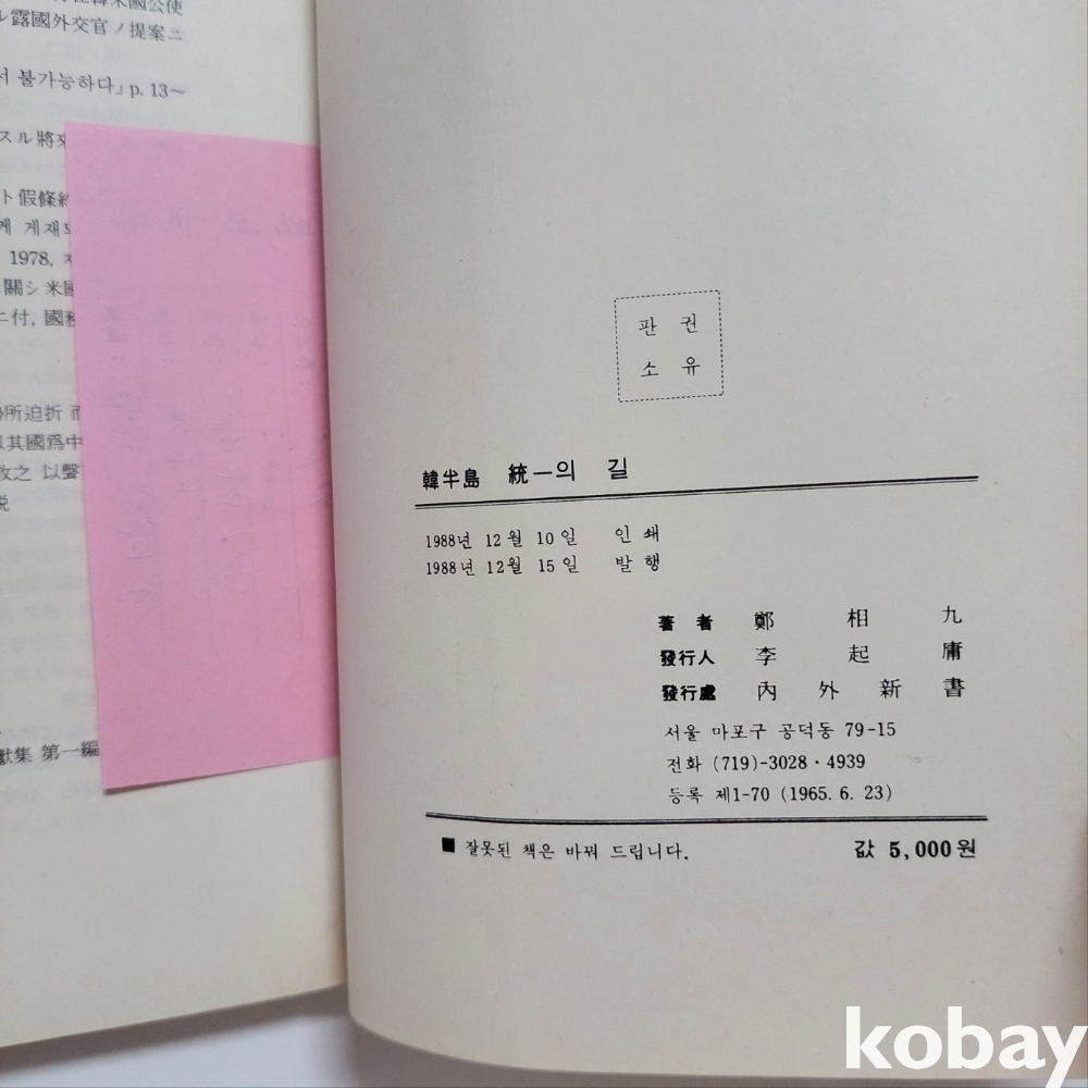중급 : 표지없음/ 바램/ 필기 낙서/ 직인/ 갈라짐
