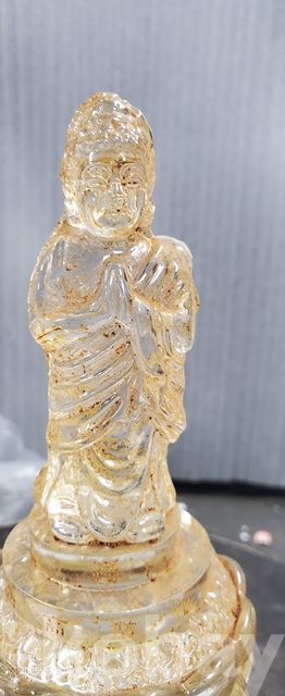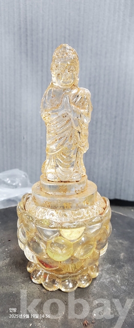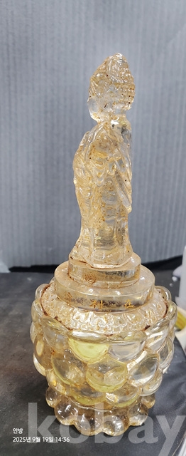 w-58.오래된 연꽃위에입불 사리가들어있는 수정사리탑