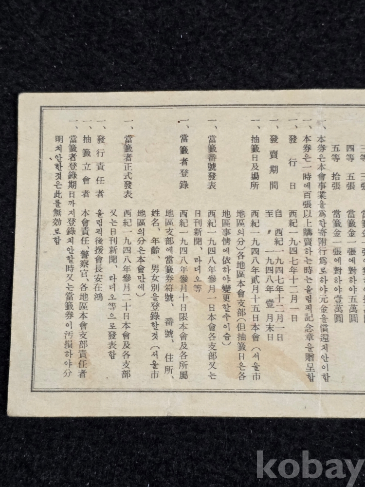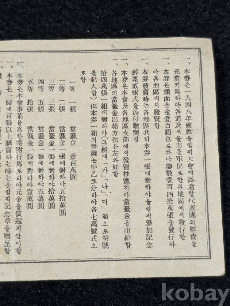 (((근현대사자료))) 1947년 대한민국 최초복권 (올림픽 후원권)