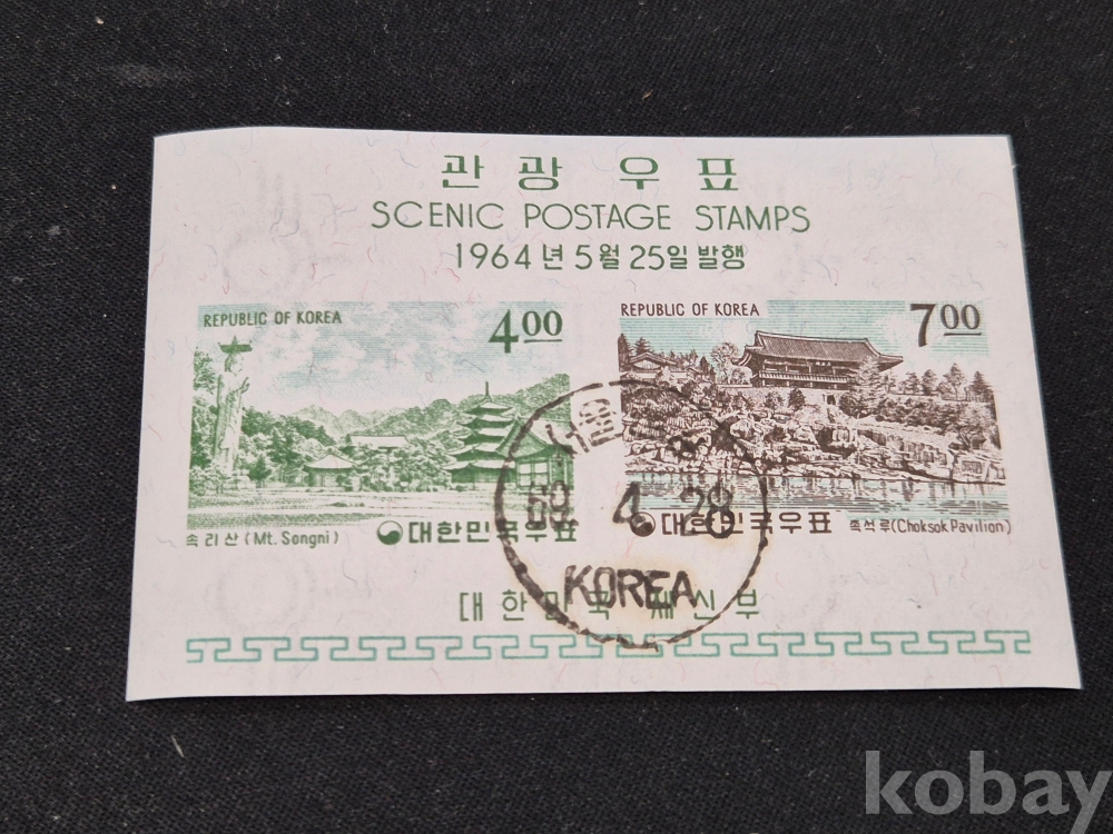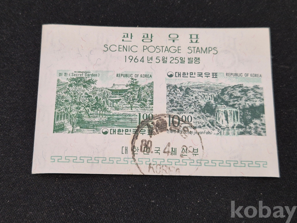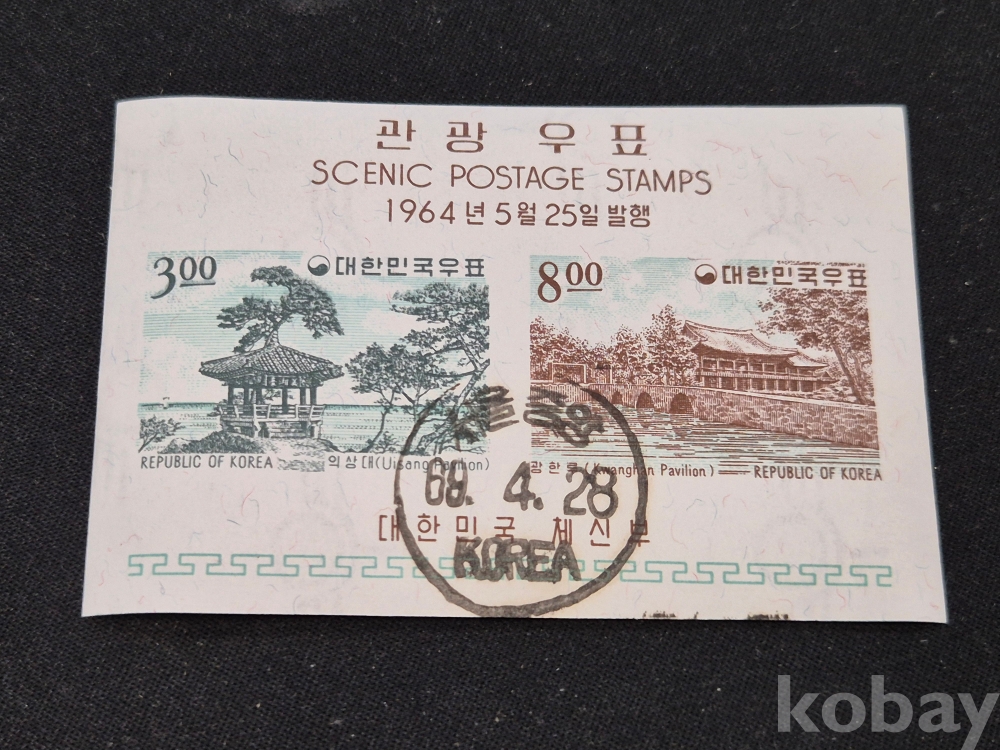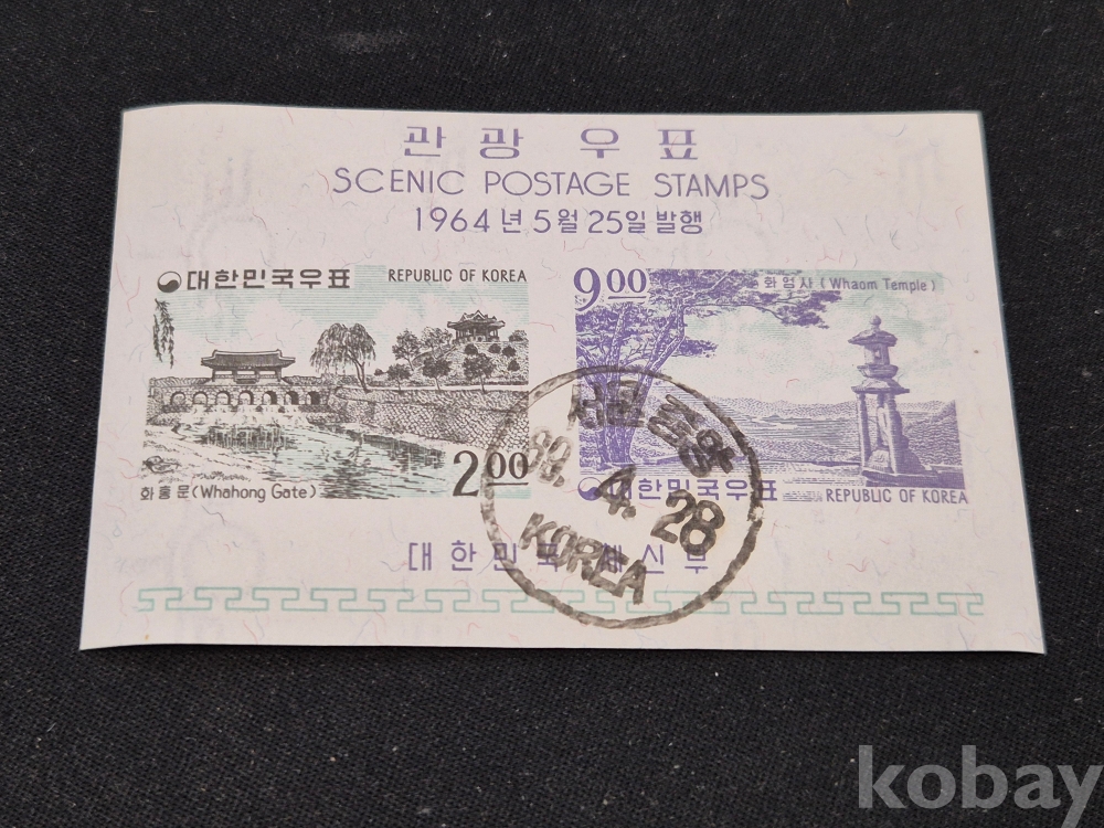 1]. 품명 : 1964년발행 관광우표 시트 1세트(주문소인)