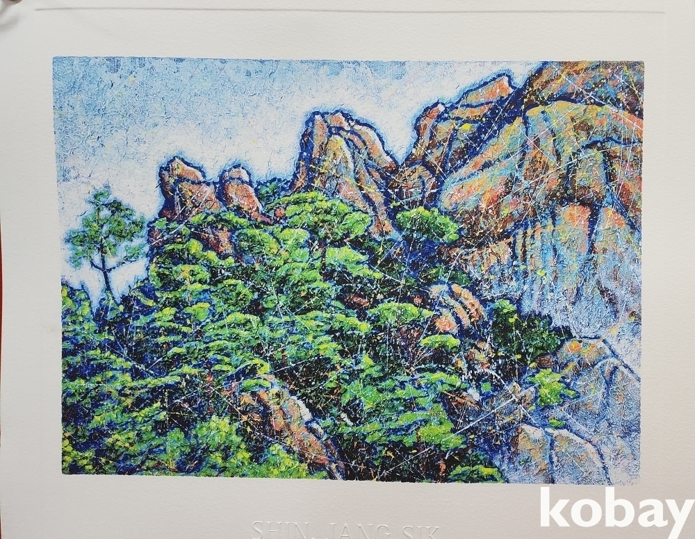 유명 서양화가 신장식 사인이 보이는 압인 판화입니다,