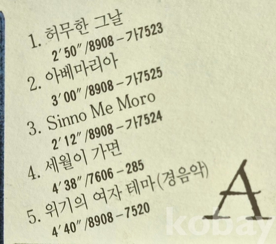 | 자켓상태 | EX : 약간의 마모, 모서리 찢김 존재 | 음반상태 | EX : 재생에 영향 없는 가벼운 기스 존재 | 발매정보 | 초반 | 가사지여부 | 무 |