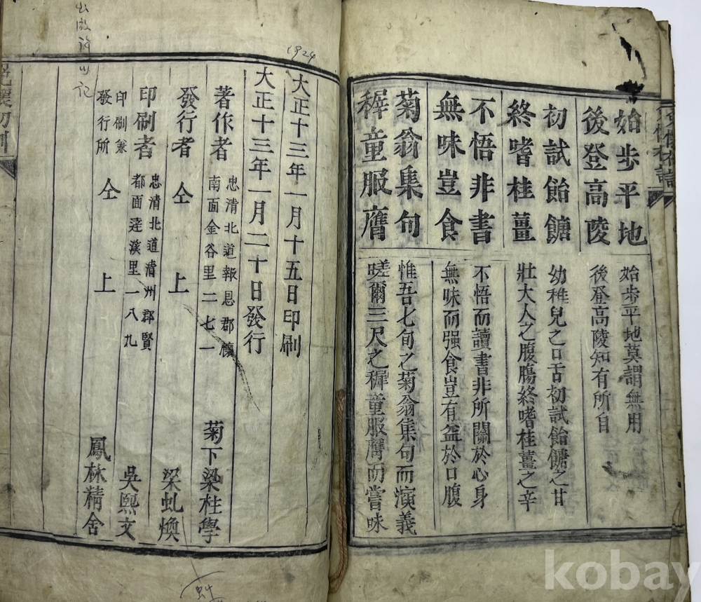 물 품 명 | <취향지가> [12] 1924년 충북 보은 인물 국하 양주학(菊下 梁柱學)의 저술, 아동 한문 교육서 [면학초훈(免懷初訓)] 목활자본 1책(單) | |||||