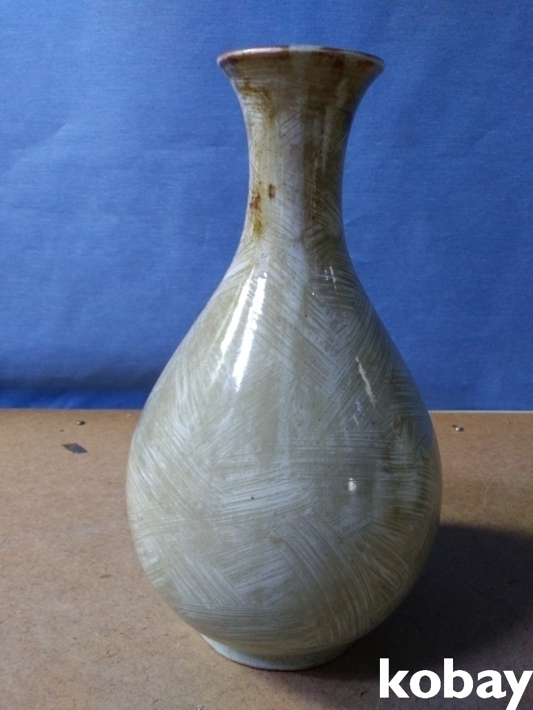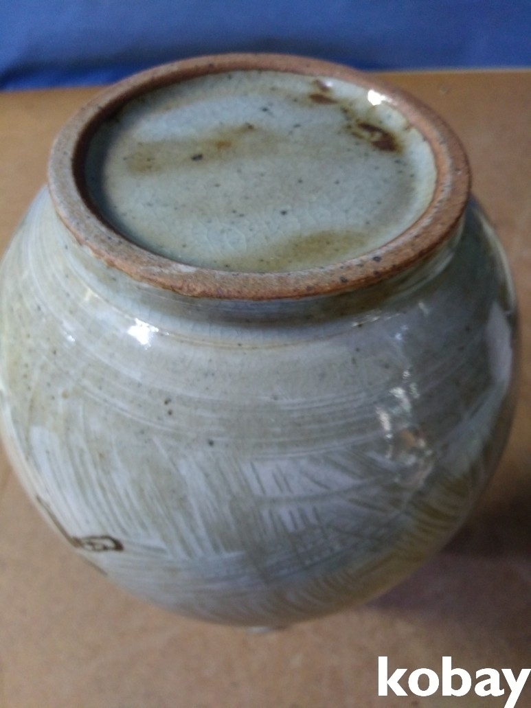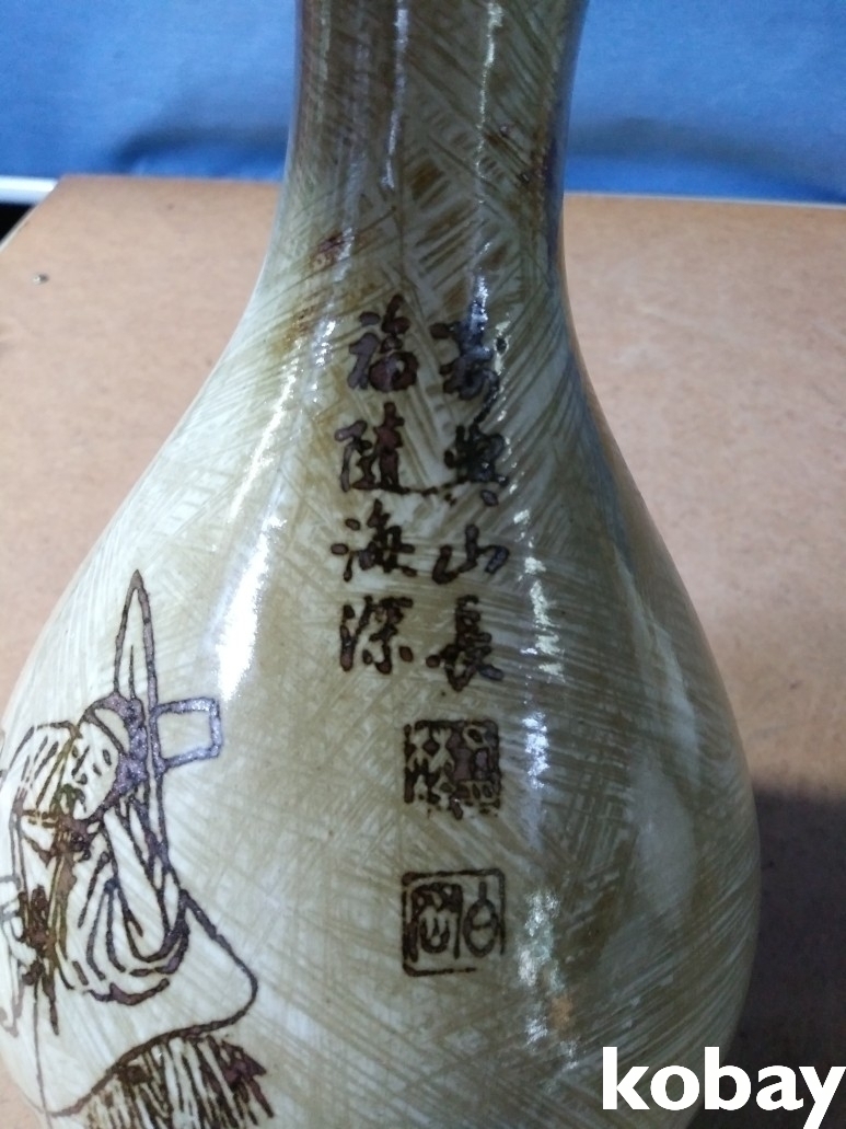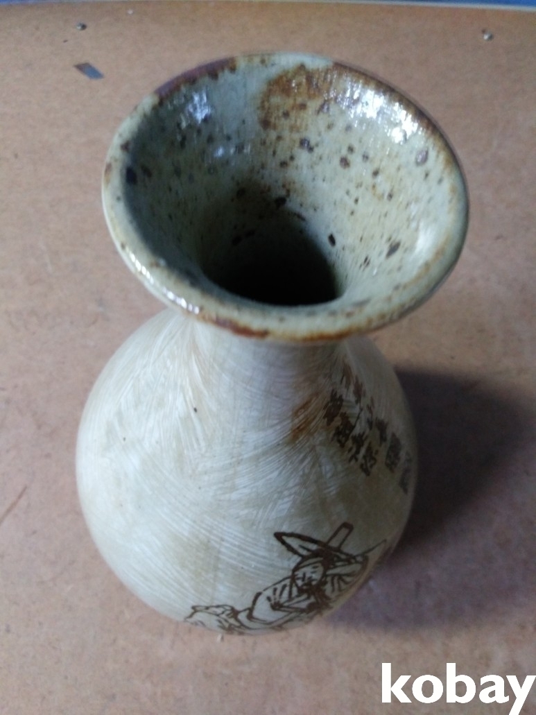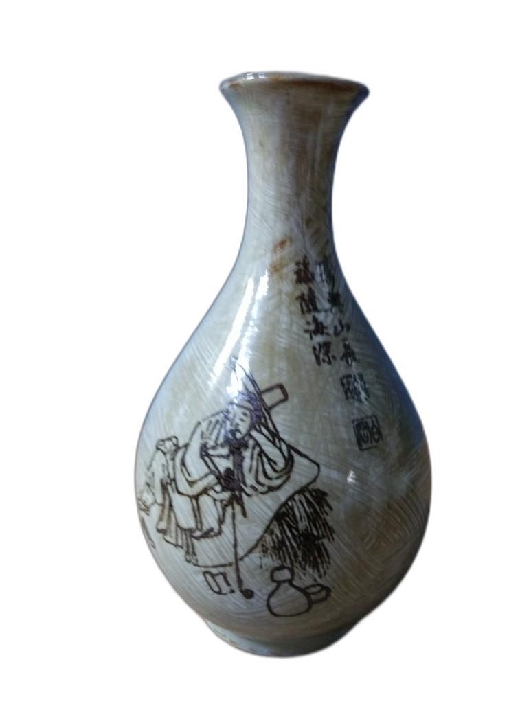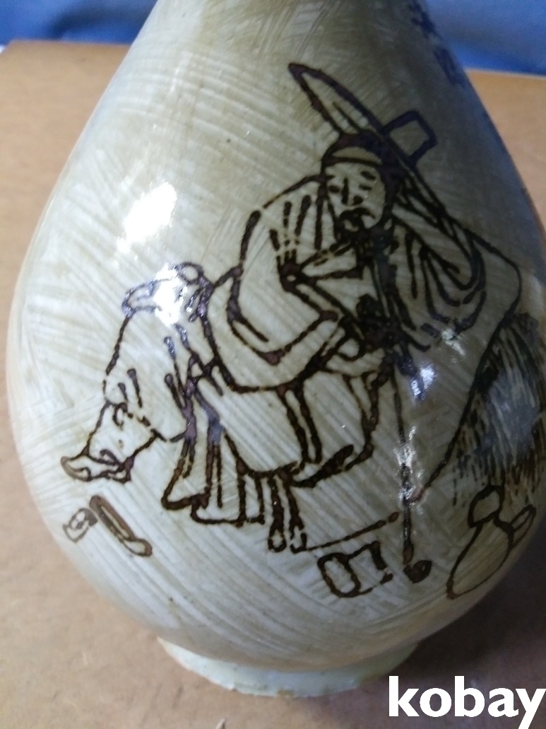 담뱃대 물고 누워 있는 선비의 도안이 있는 주병 도자기 입니다.