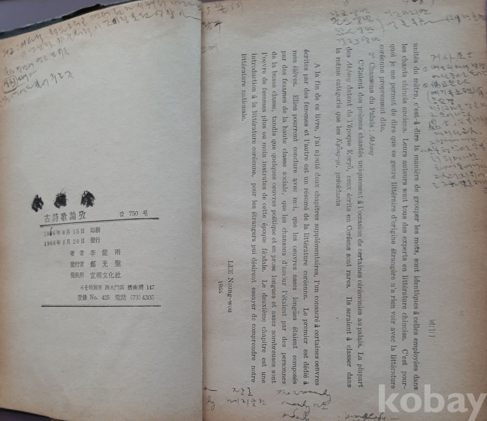 고시가론고-이능우 저 1966년초판 선명문화사 발행