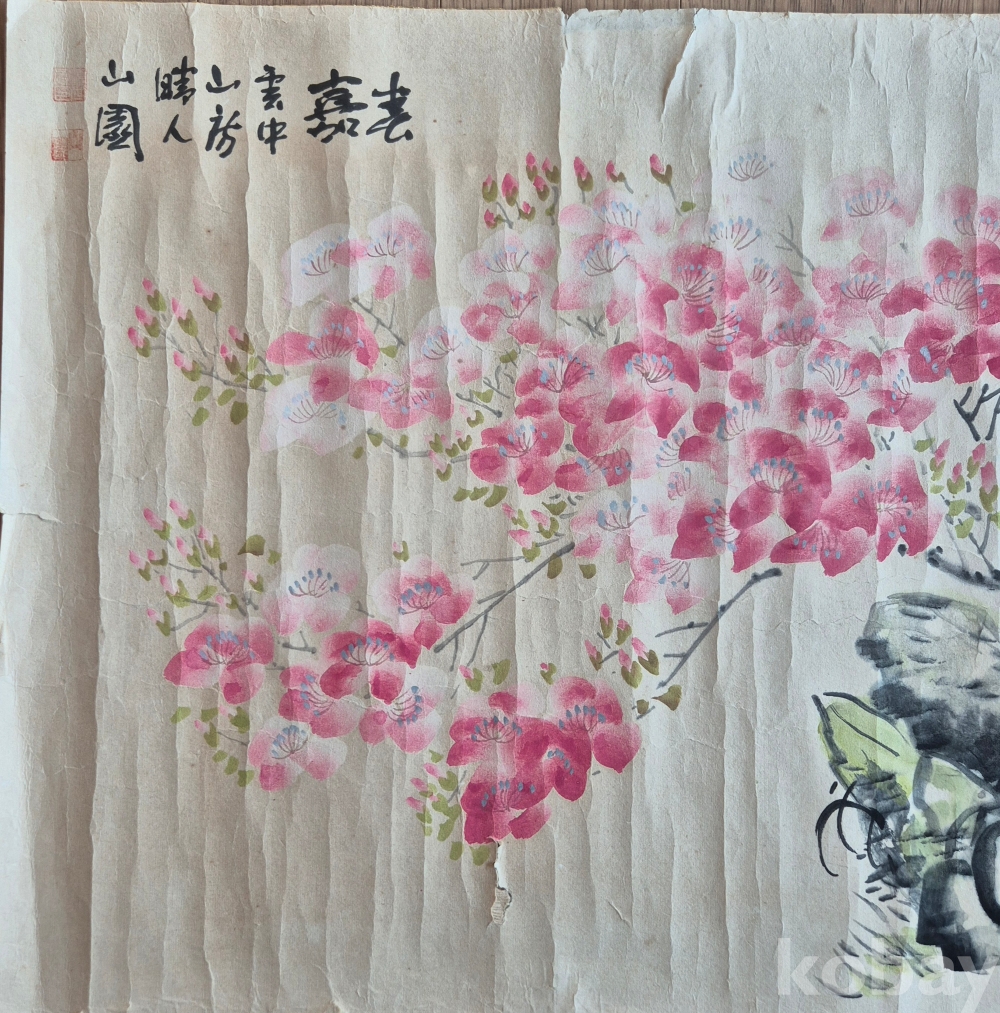 국전 심사위원 역임하신 유명화가 산원 권세원'화백님 괴석이 들어간 아름다운 꽃 그림'이오니
