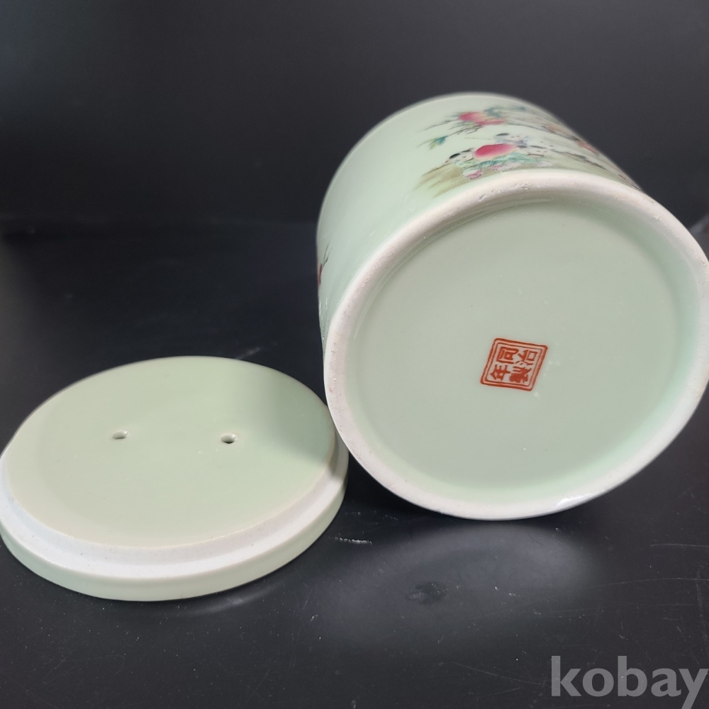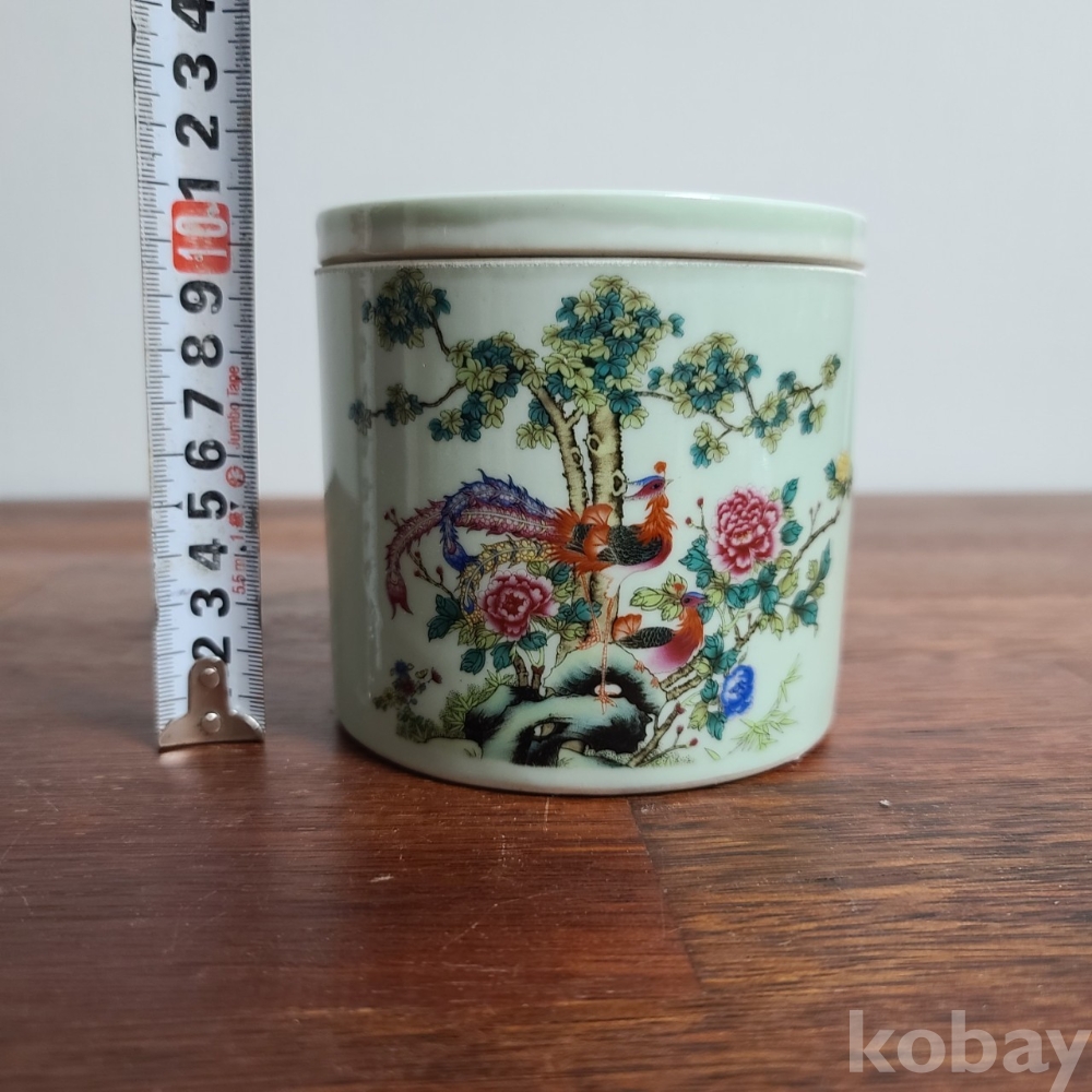 중국 문양의 그림이 전면에 담긴 미사용 도자기 차통 입니다.