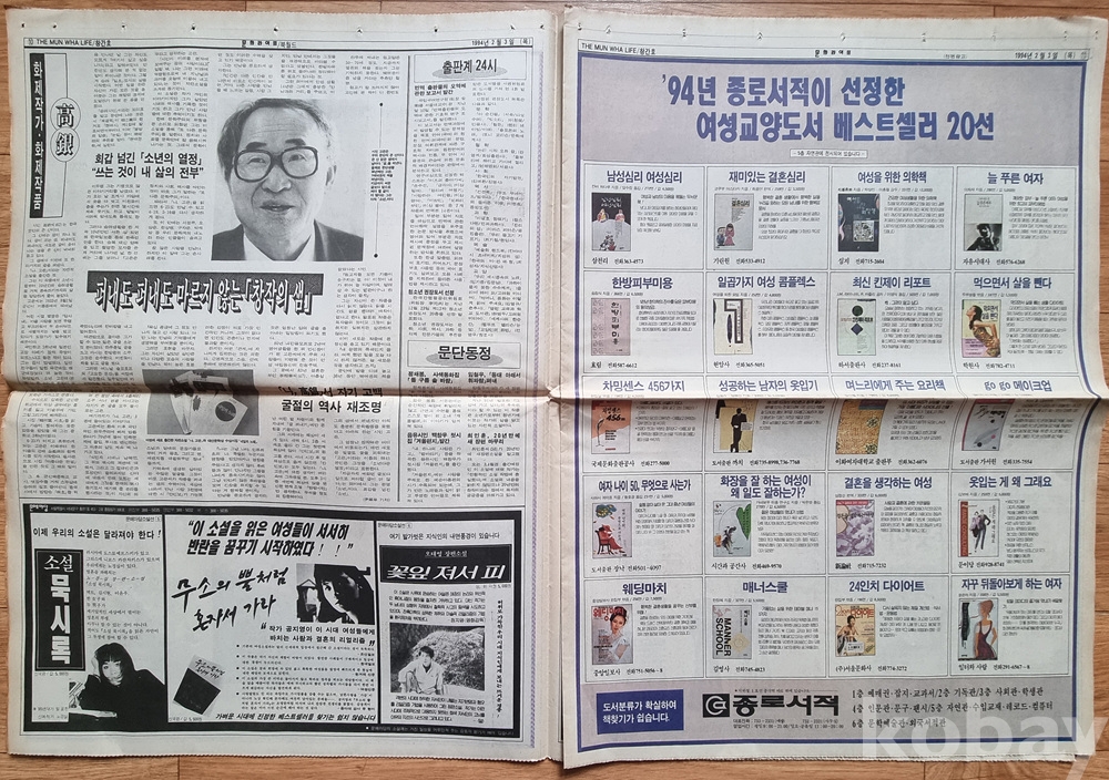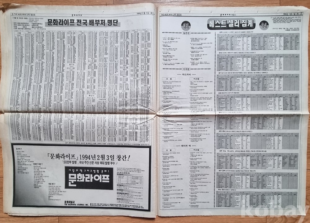 당시 베스트셀러: 종로서적과 교보문고의 94년 당시 실시간 베스트셀러 순위가 기록되어 있어 문학사적 자료 가치가 높습니다.