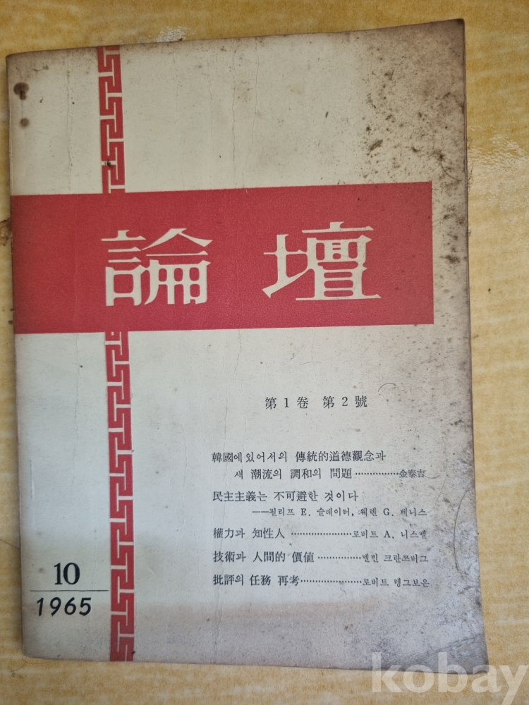 논단 제1권 제 2호 1965년 10월호 - 중고서적입니다