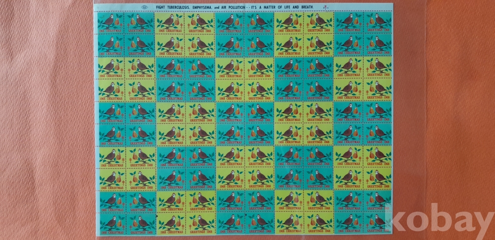 1968년 미국 크리스마스 씰 100매 전지 입니다.