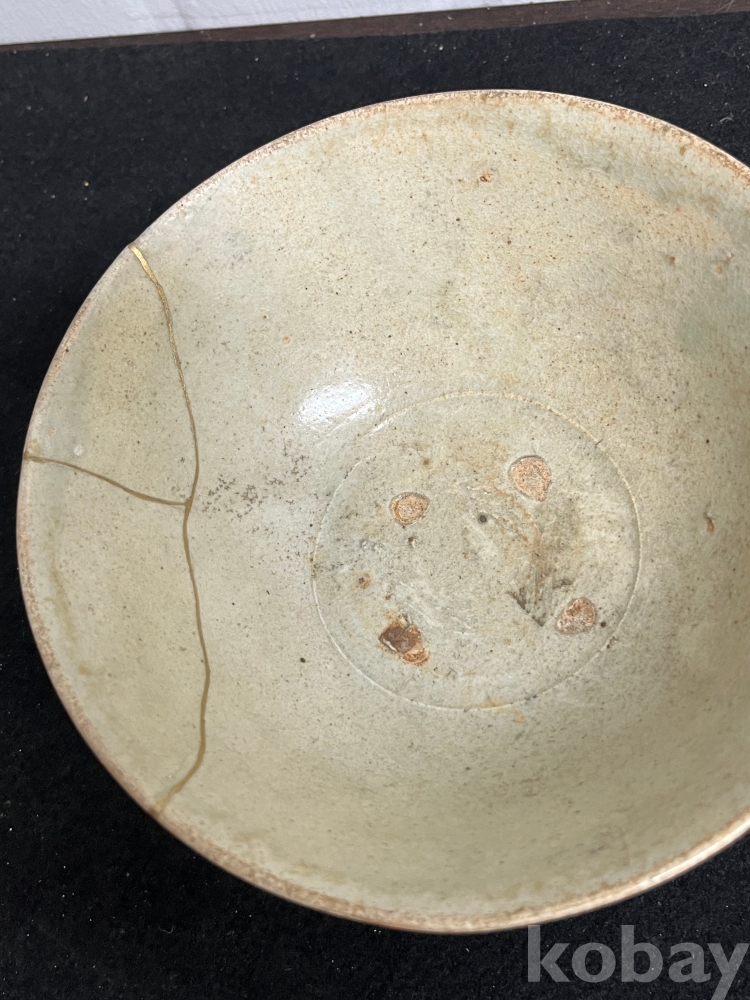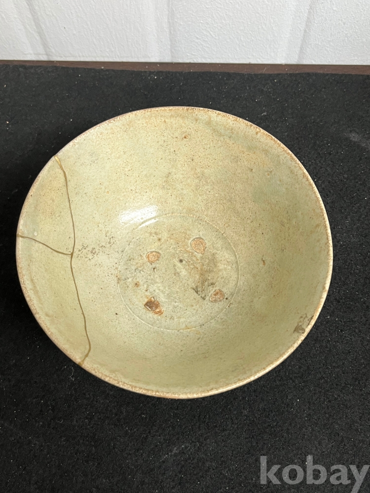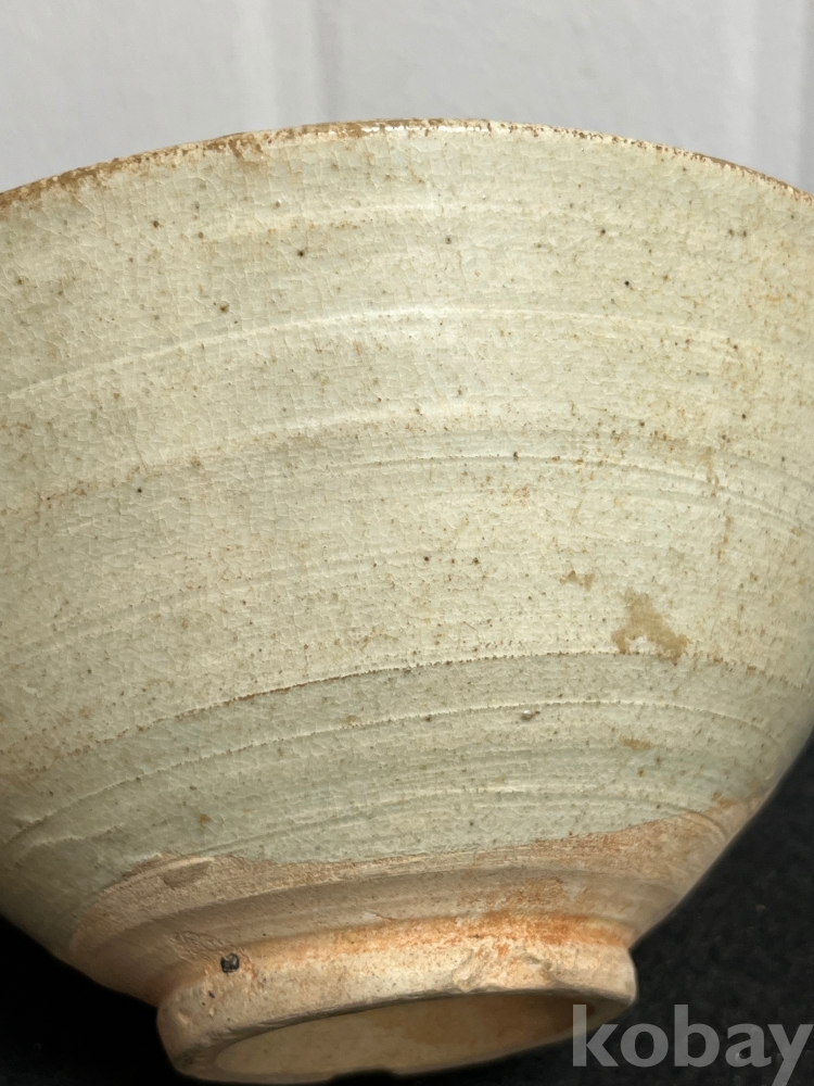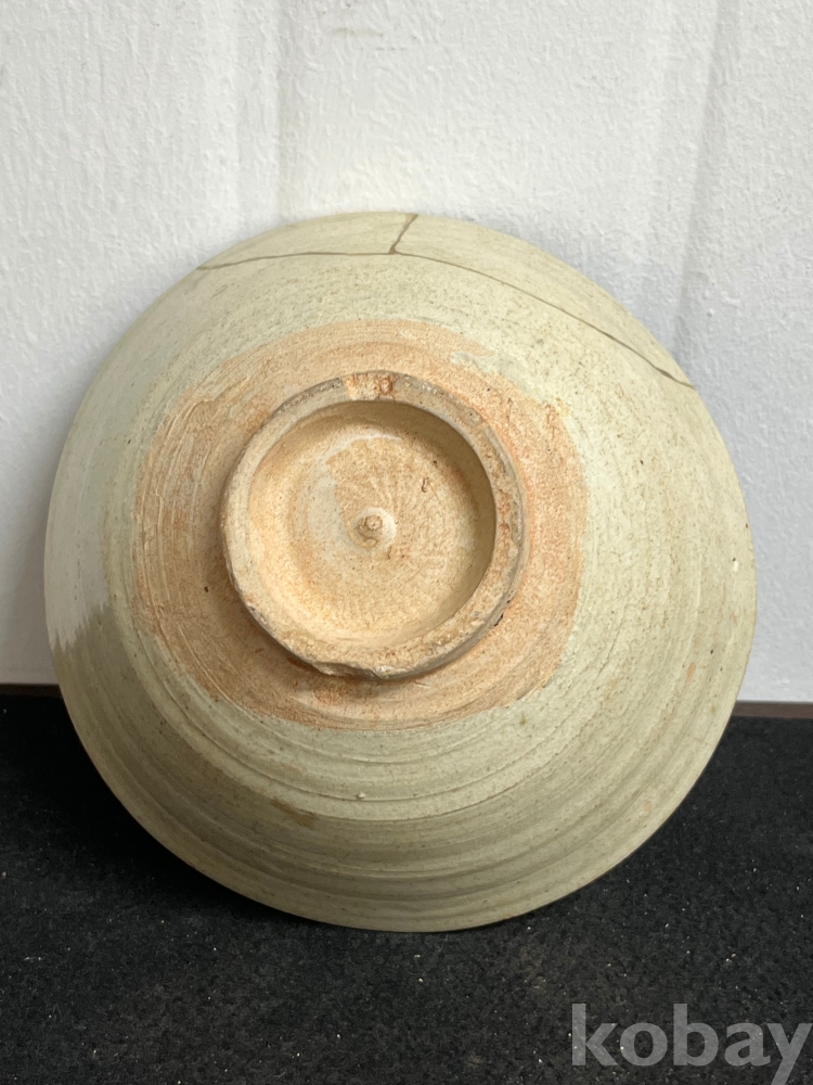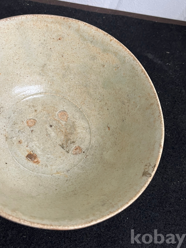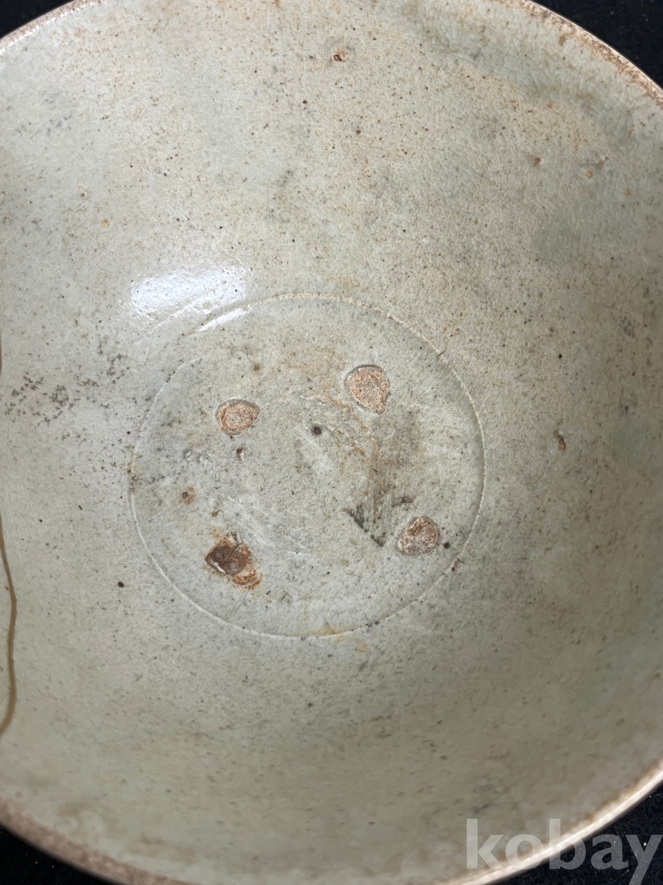 유약위로 은은한 철분 점들과 빙열이 보이며, 내면에는 소성과정에 생긴 받침흔적이 있습니다.