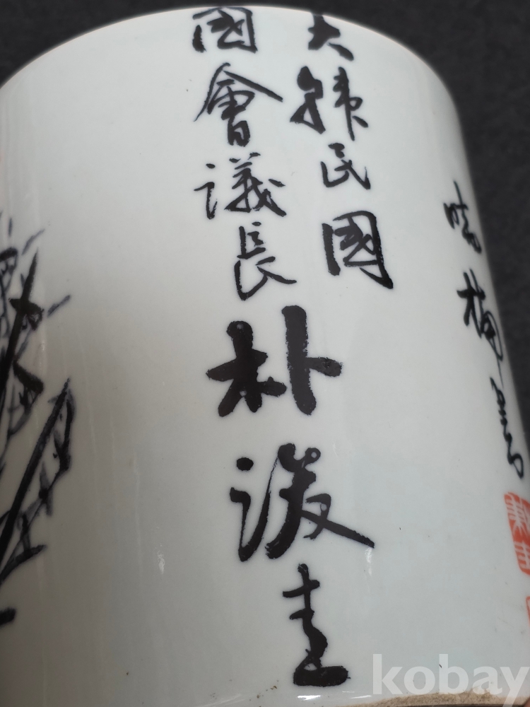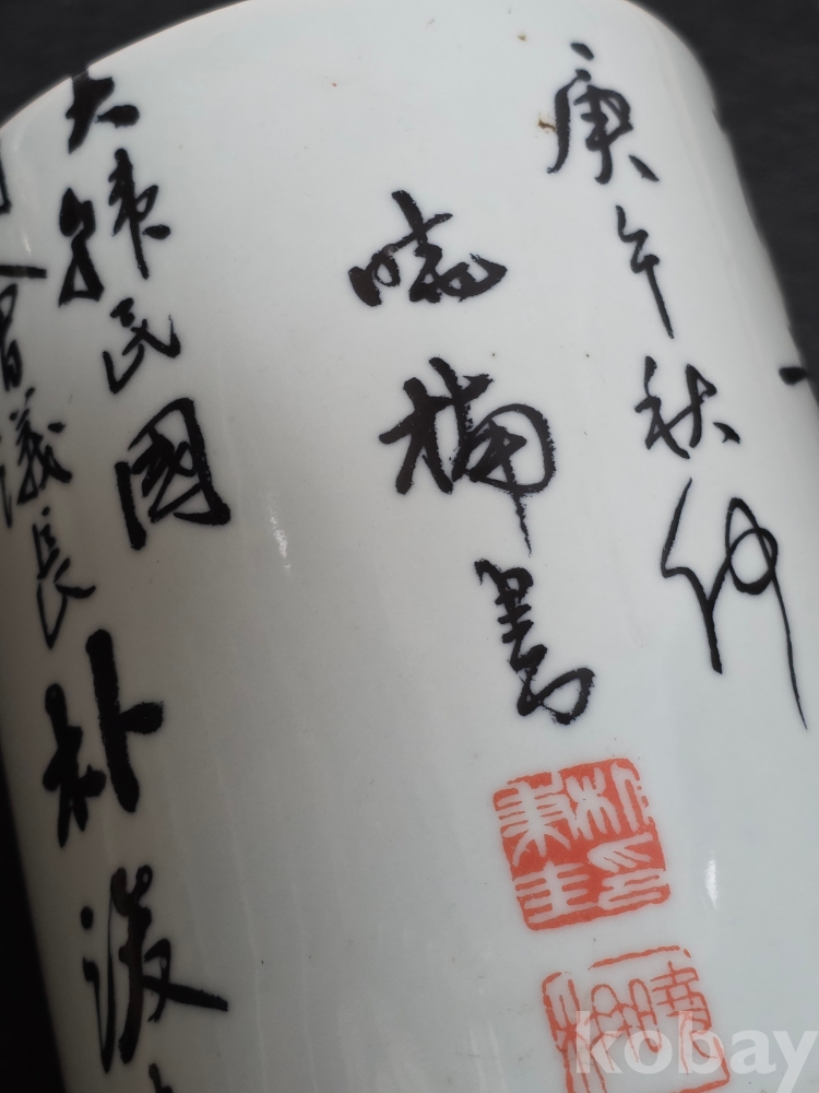 (((도자기붓통)) 오래전 蘭그림있는 大韓民國 國會議長 朴浚圭 도자기붓통
