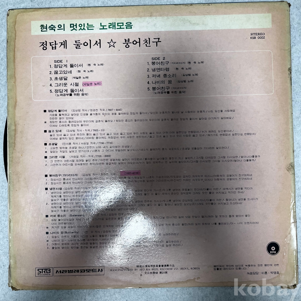 • 제조사: 서라벌레코드사 (KSB-0002)