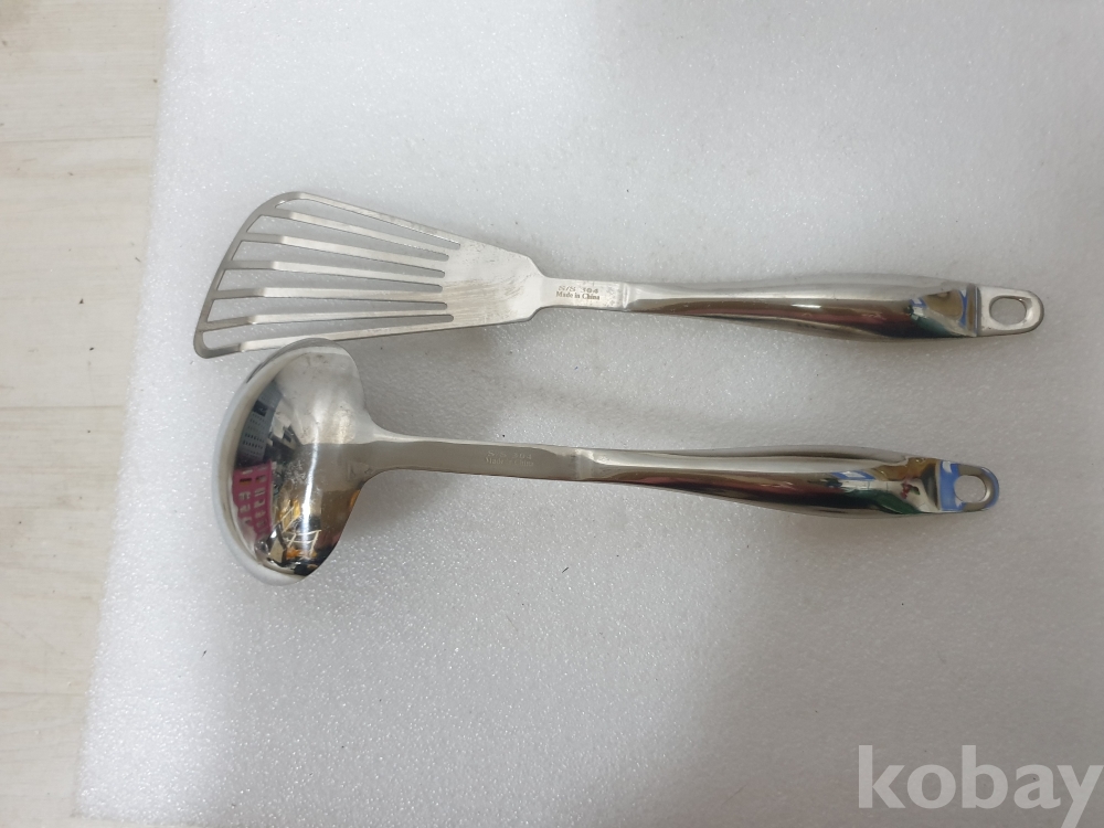 {천원경매} Y-4-1095 쿡쉘 스텐 국자+뒤집개