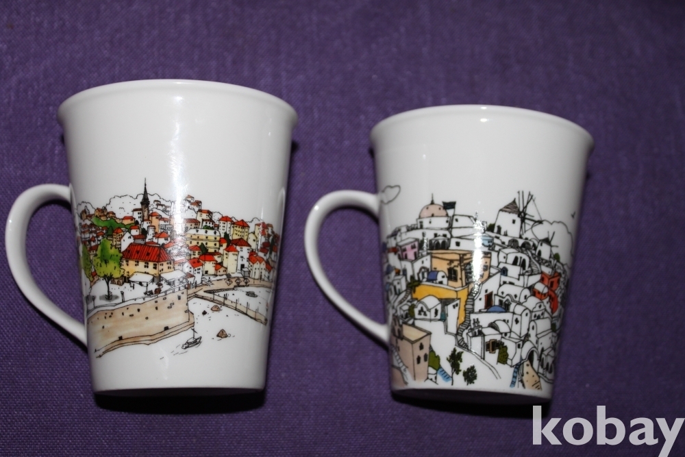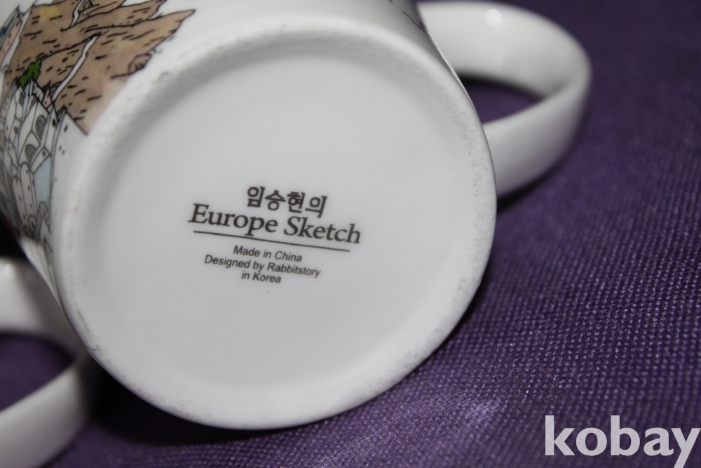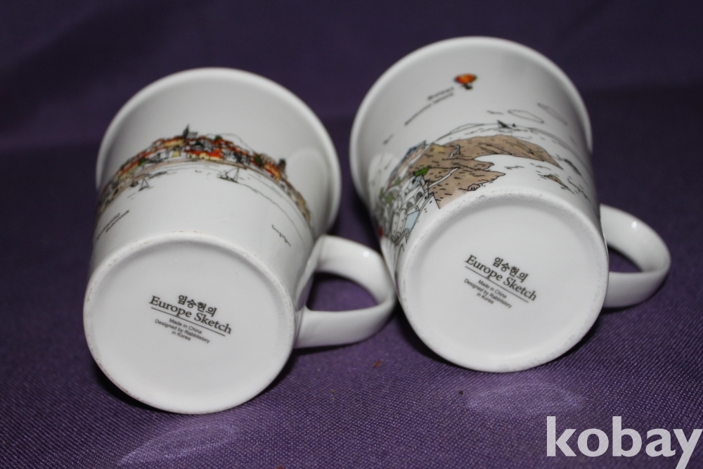 스케치가 전사로 들어간 머그컵 2개입니다.