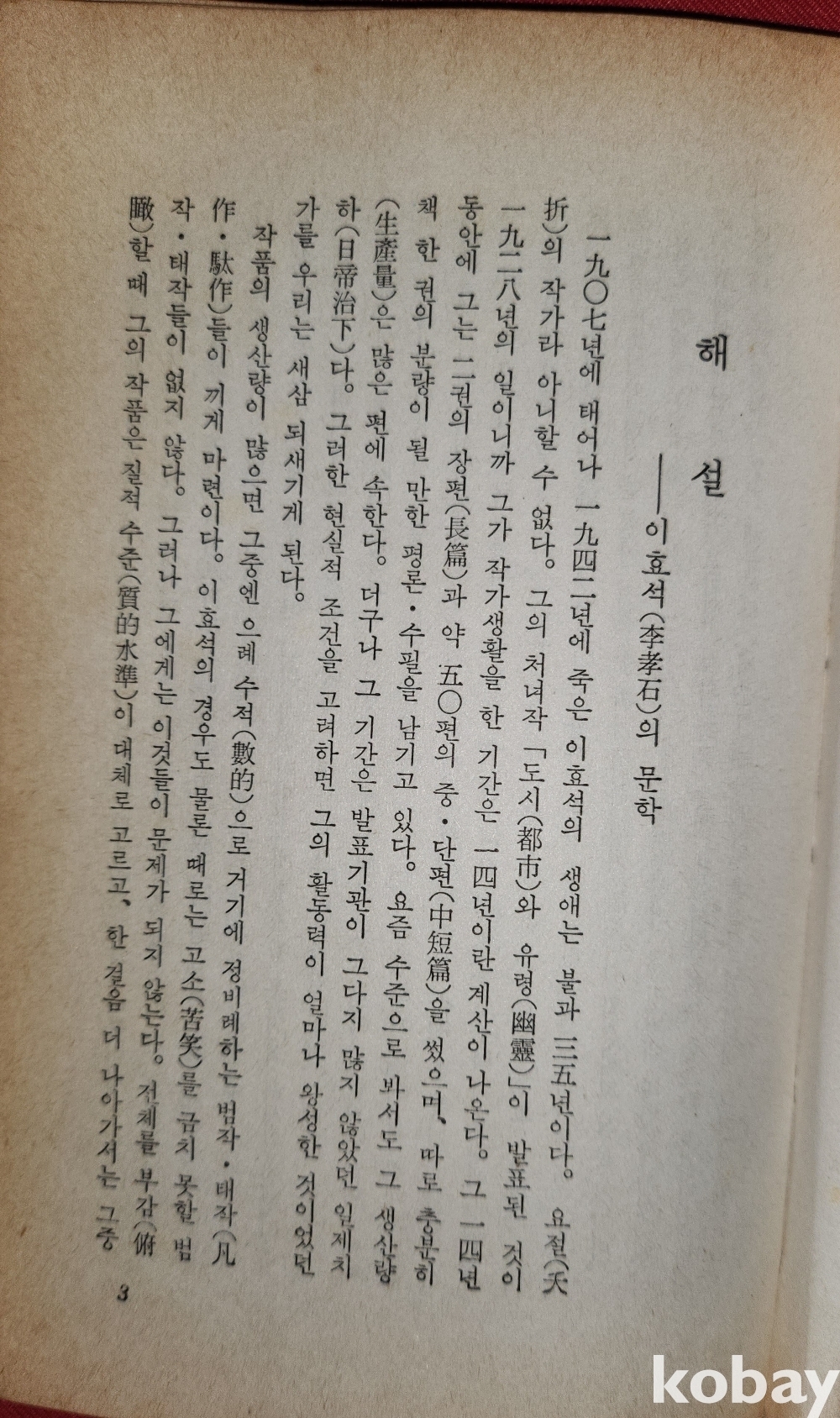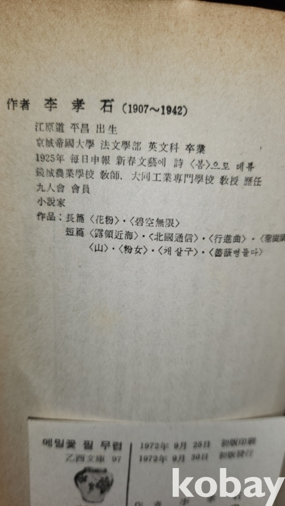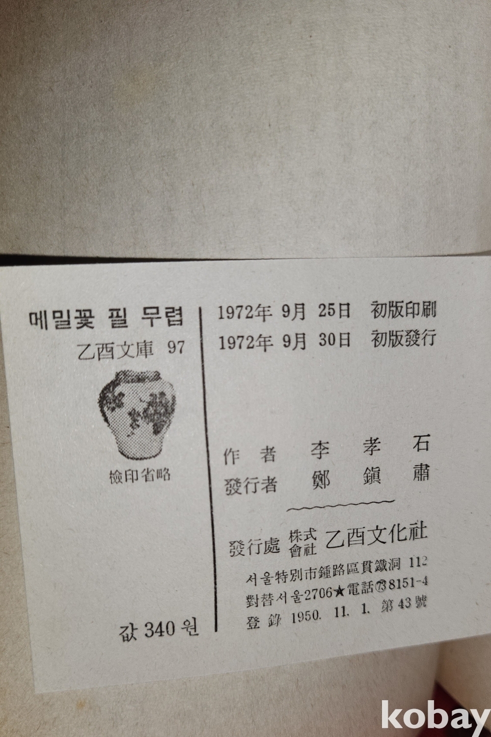 1972년 판 이효석 작 메밀꽃 필 무렵입니다,