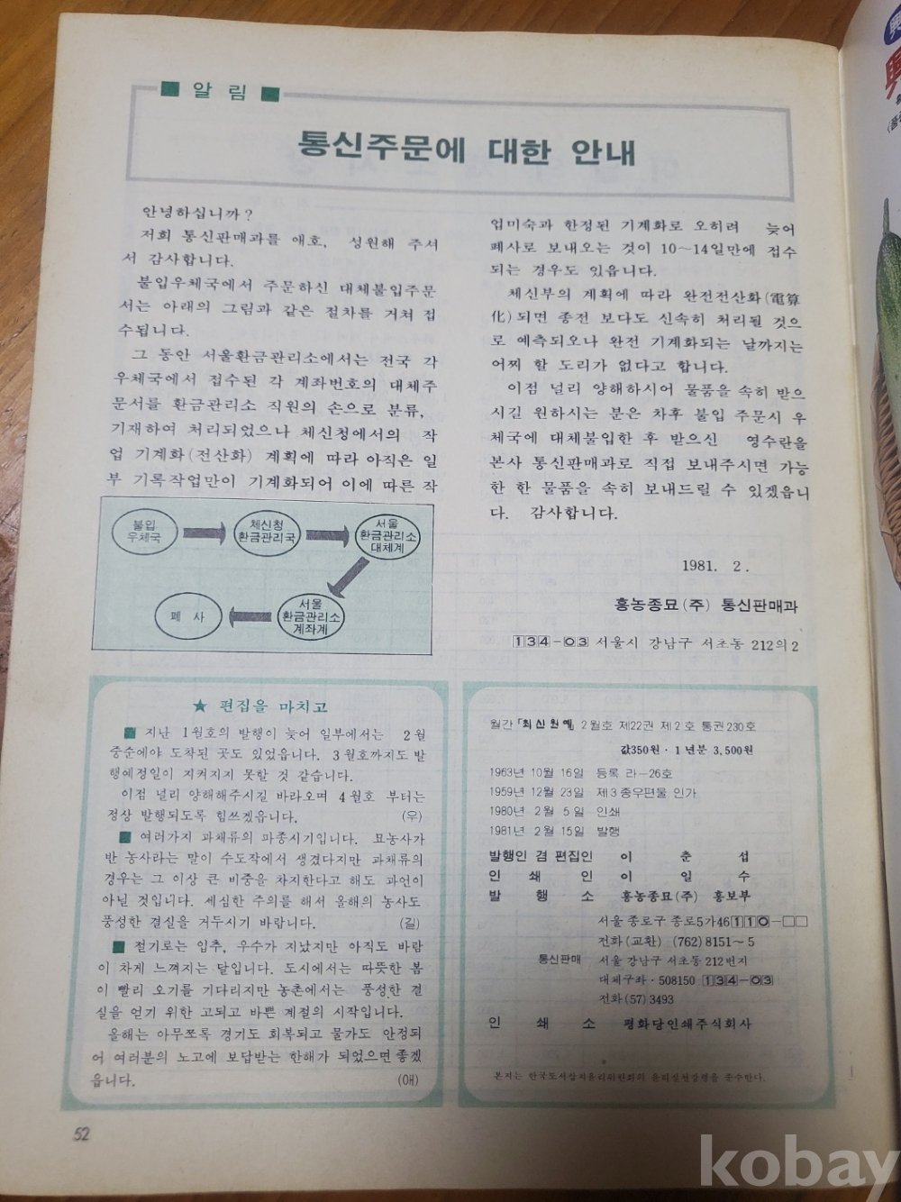 1. 월간 최신원예 통권 230호, 흥농종묘주식회사, 1981년, 52쪽, 상태 상, 사진 참조